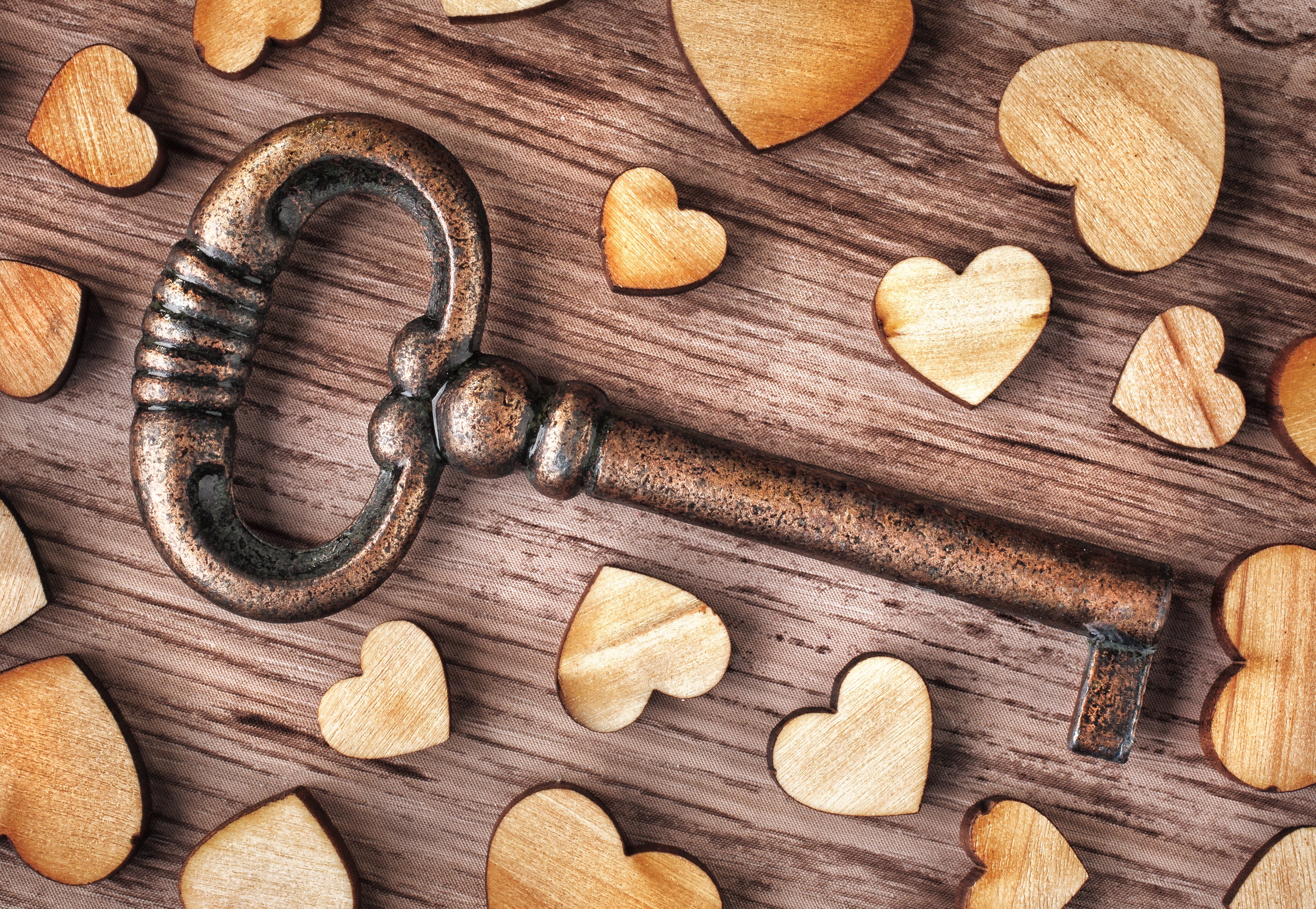 Большой железный ключ с деревянными сердечками - 3306x2284