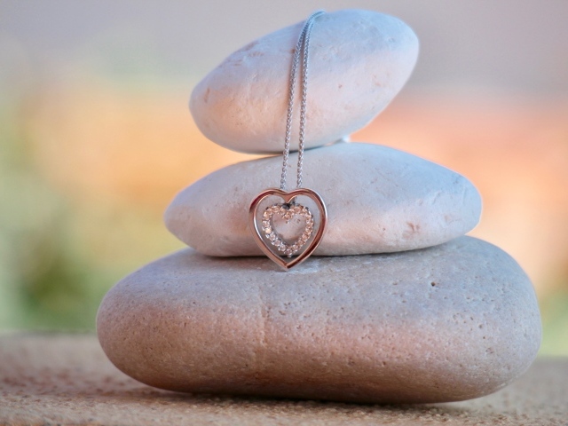 Золотой кулон в форме сердца висит на камнях - 5184x3226
