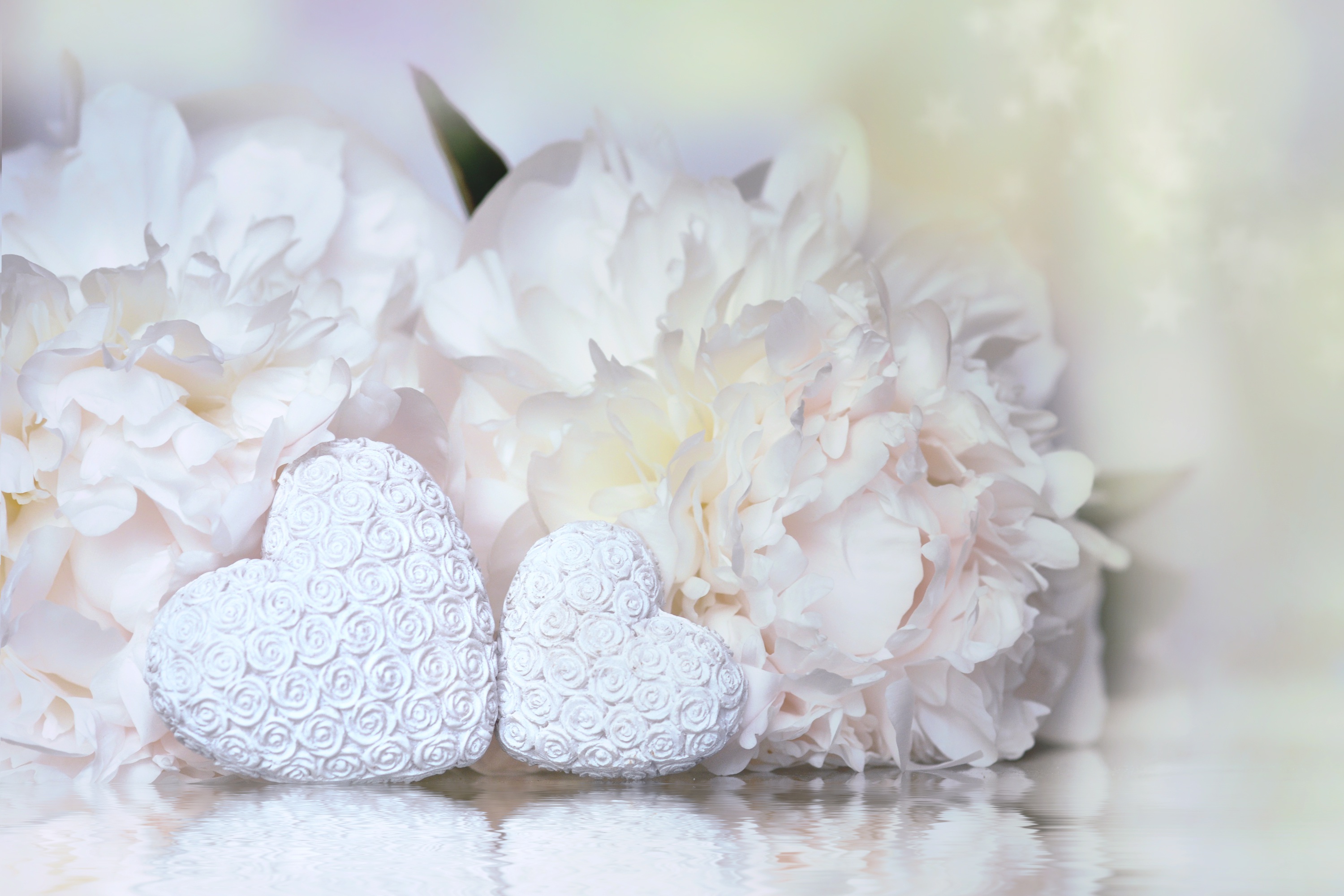 Два белых сердца с цветами пиона - 3000x2002
