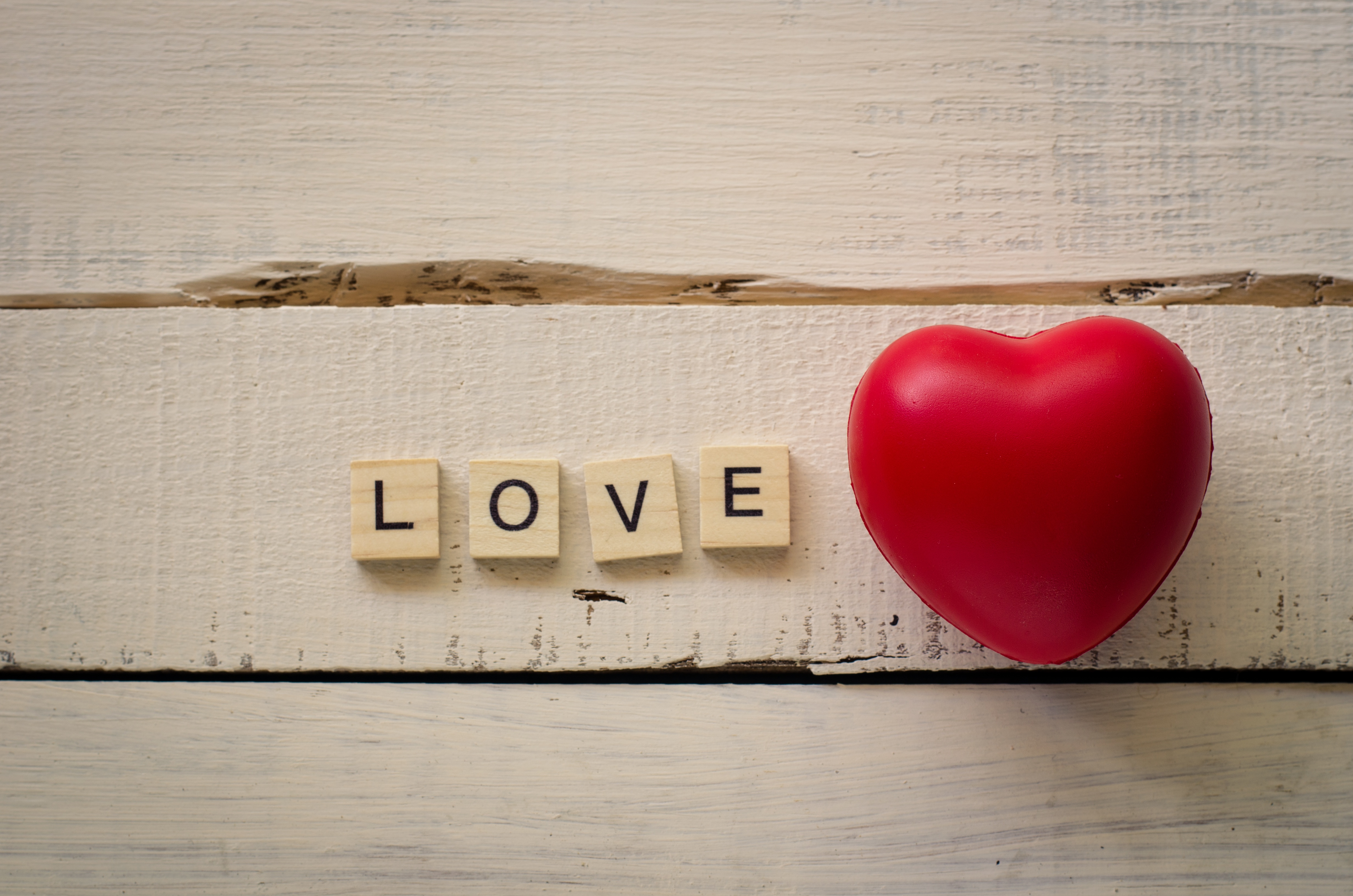 Большое красное резиновое сердце с кубиками - 4928x3264
