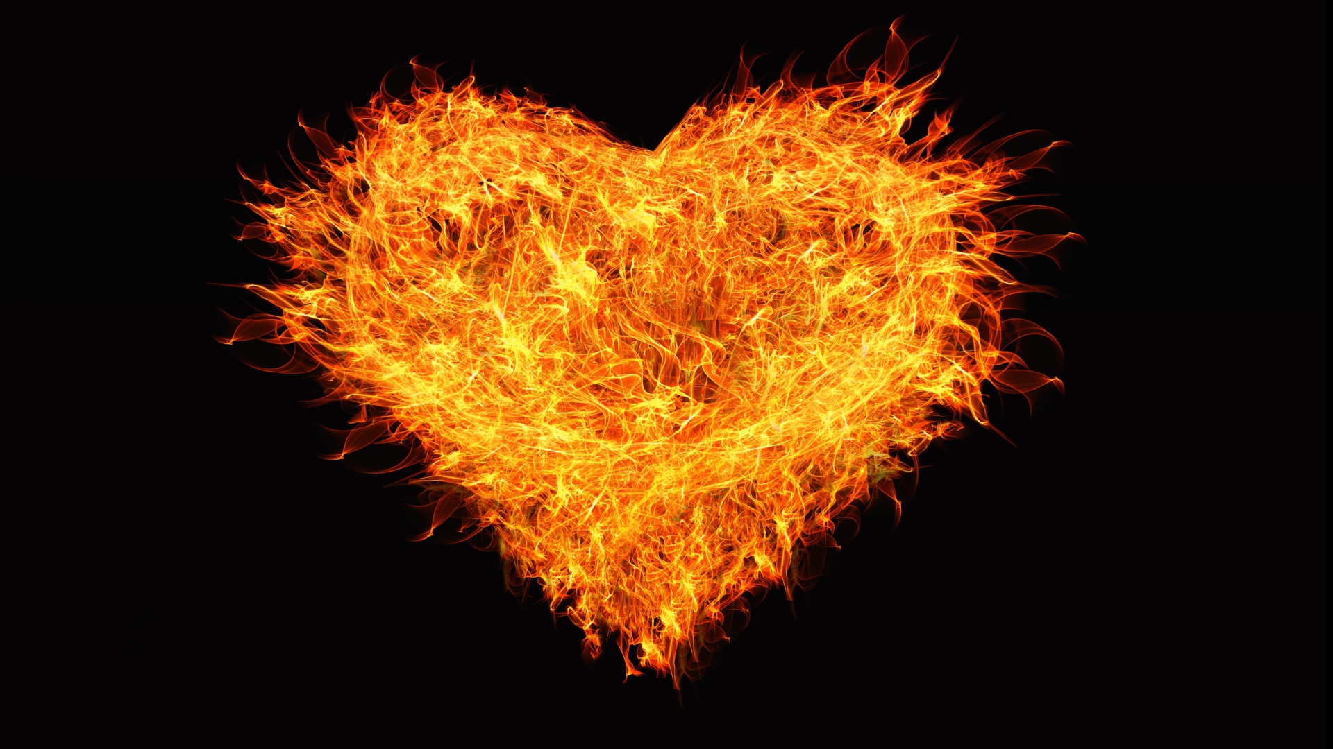 Большое огненное сердце на черном фоне Обои для рабочего стола 1920x1080