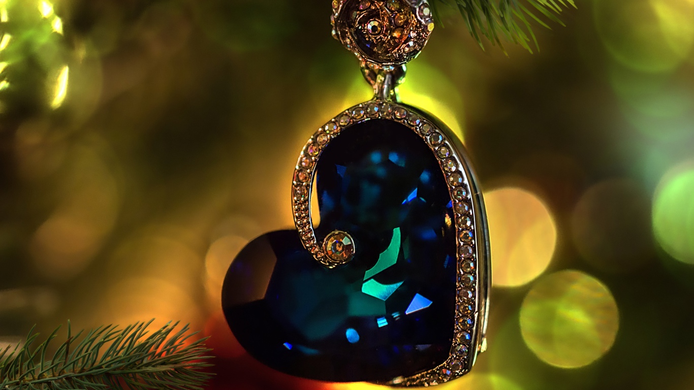Синий камень в золотом украшении в форме сердца Обои для рабочего стола 1366x768