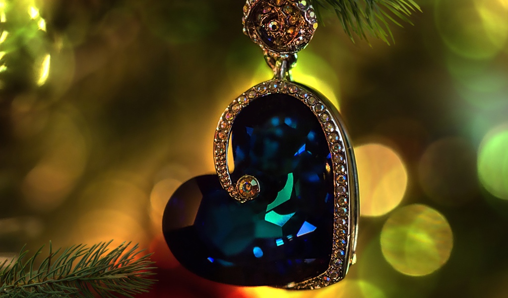 Синий камень в золотом украшении в форме сердца - 5184x3456