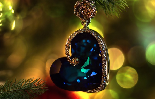 Синий камень в золотом украшении в форме сердца Обои для рабочего стола 600x382