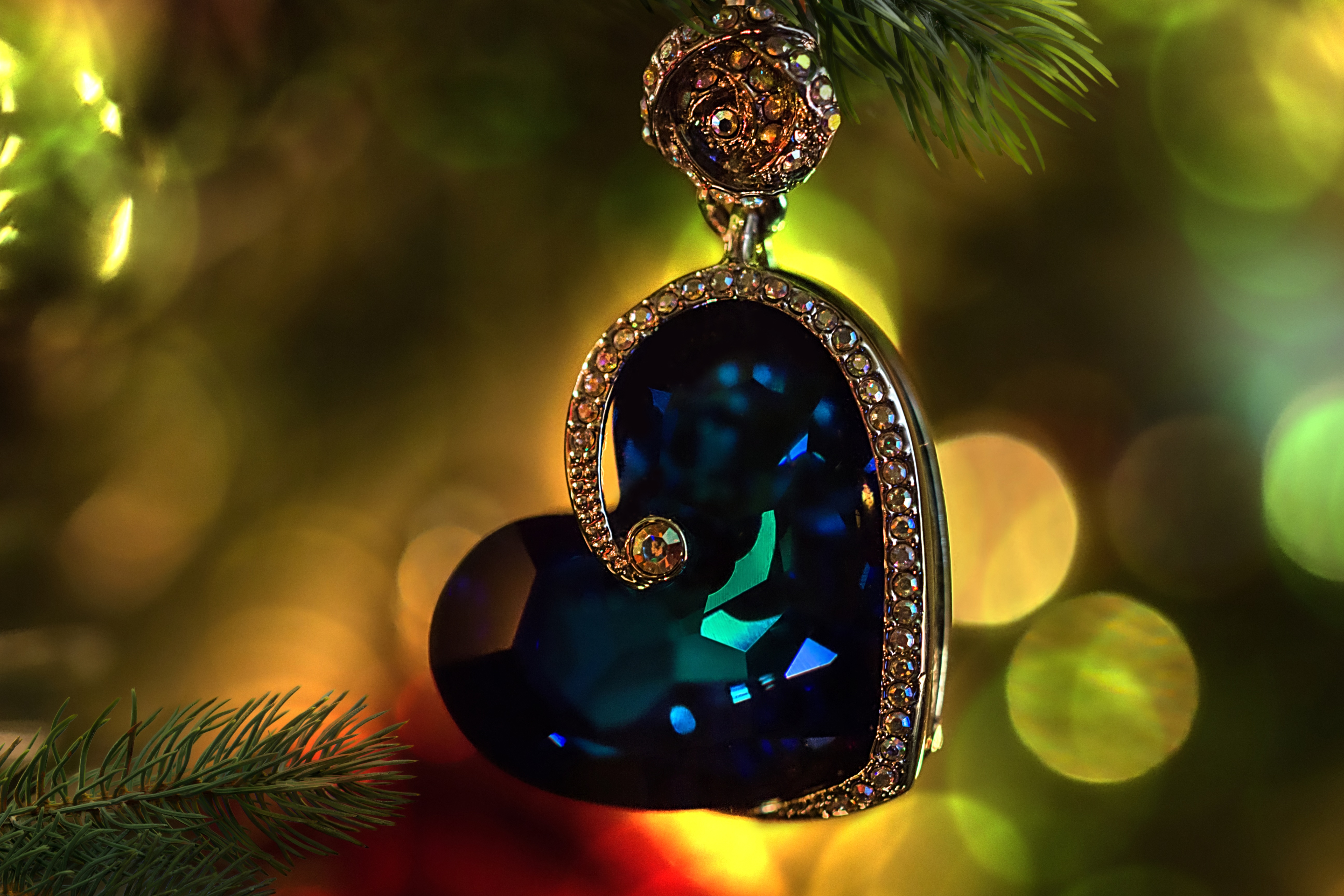 Синий камень в золотом украшении в форме сердца - 5184x3456