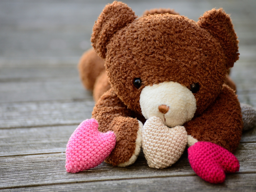 Медвежонок Тедди с вязаными сердечками Обои для рабочего стола 1024x768