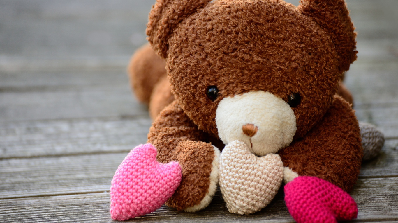Медвежонок Тедди с вязаными сердечками Обои для рабочего стола 1366x768