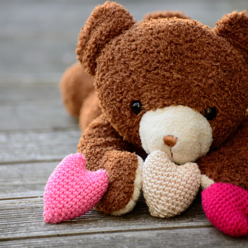 Медвежонок Тедди с вязаными сердечками Обои для рабочего стола 1024x1024