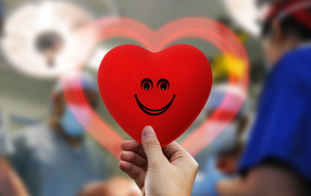 Обои: Бумажные сердечки с кисточкой на сером фоне