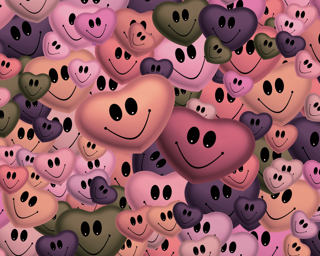 Разноцветные смайлики сердечки Обои для рабочего стола 1280x1024