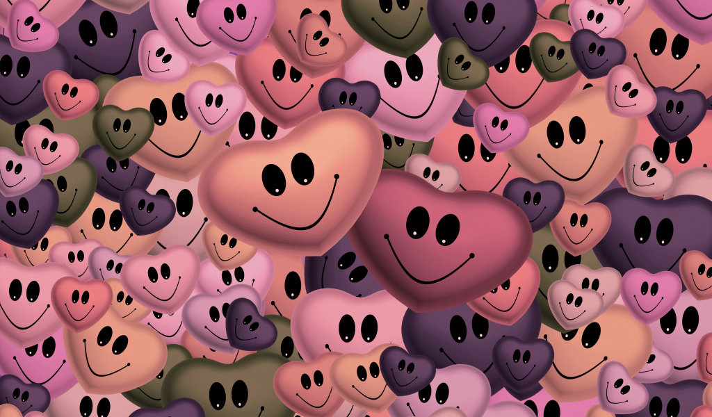 Разноцветные смайлики сердечки Обои для рабочего стола 1024x600