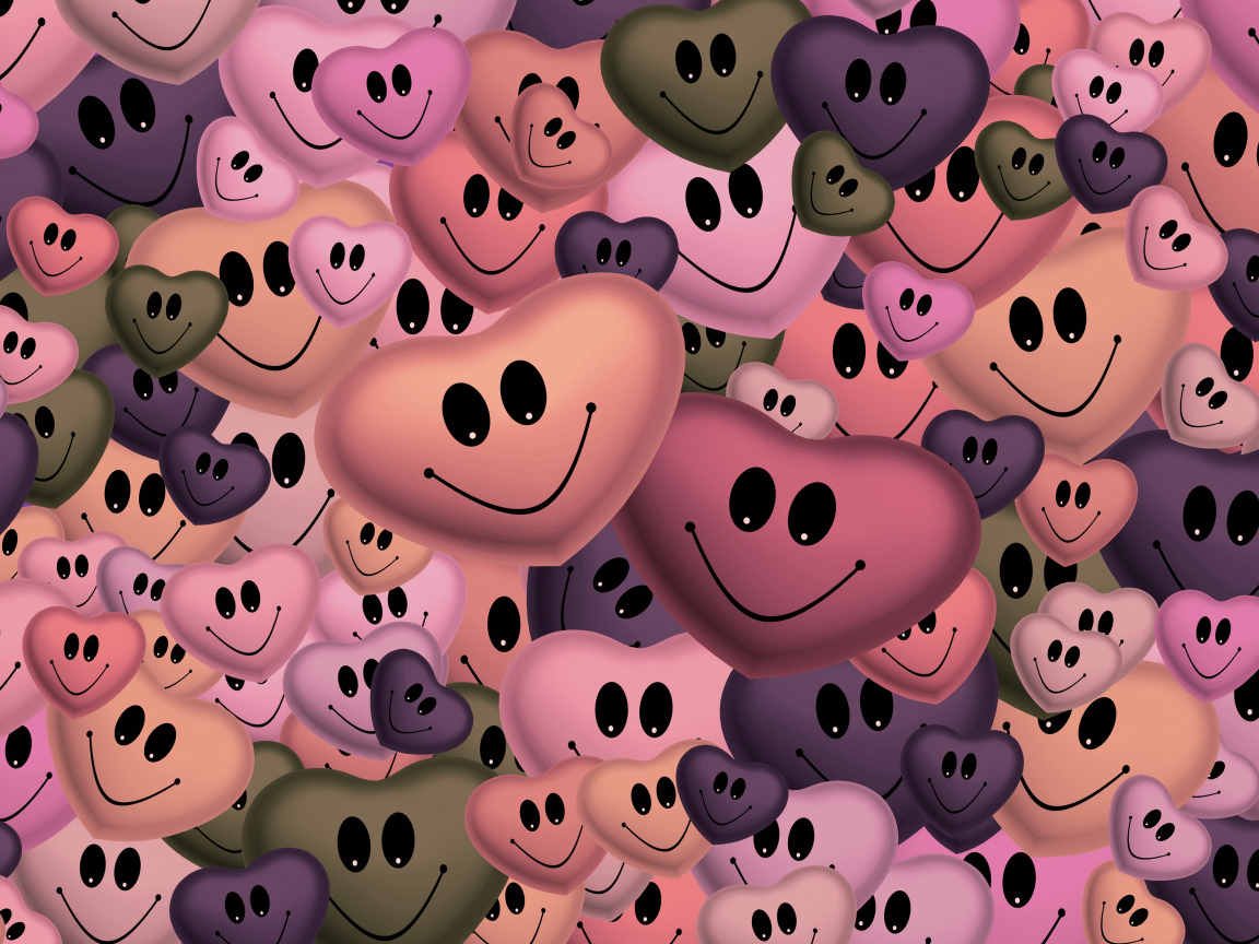 Разноцветные смайлики сердечки Обои для рабочего стола 1152x864