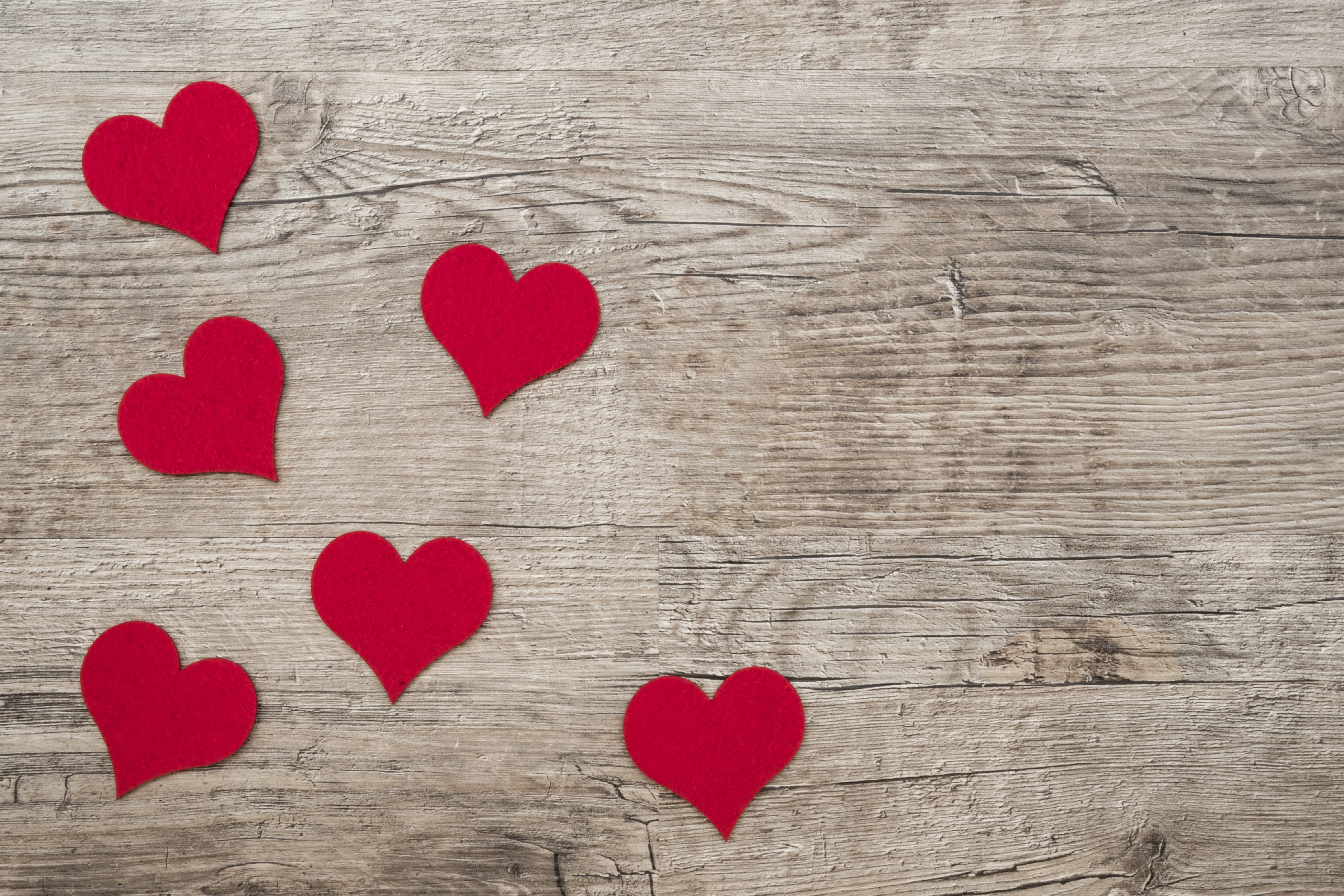 Маленькие красные сердечки на деревянном фоне - 6000x4000