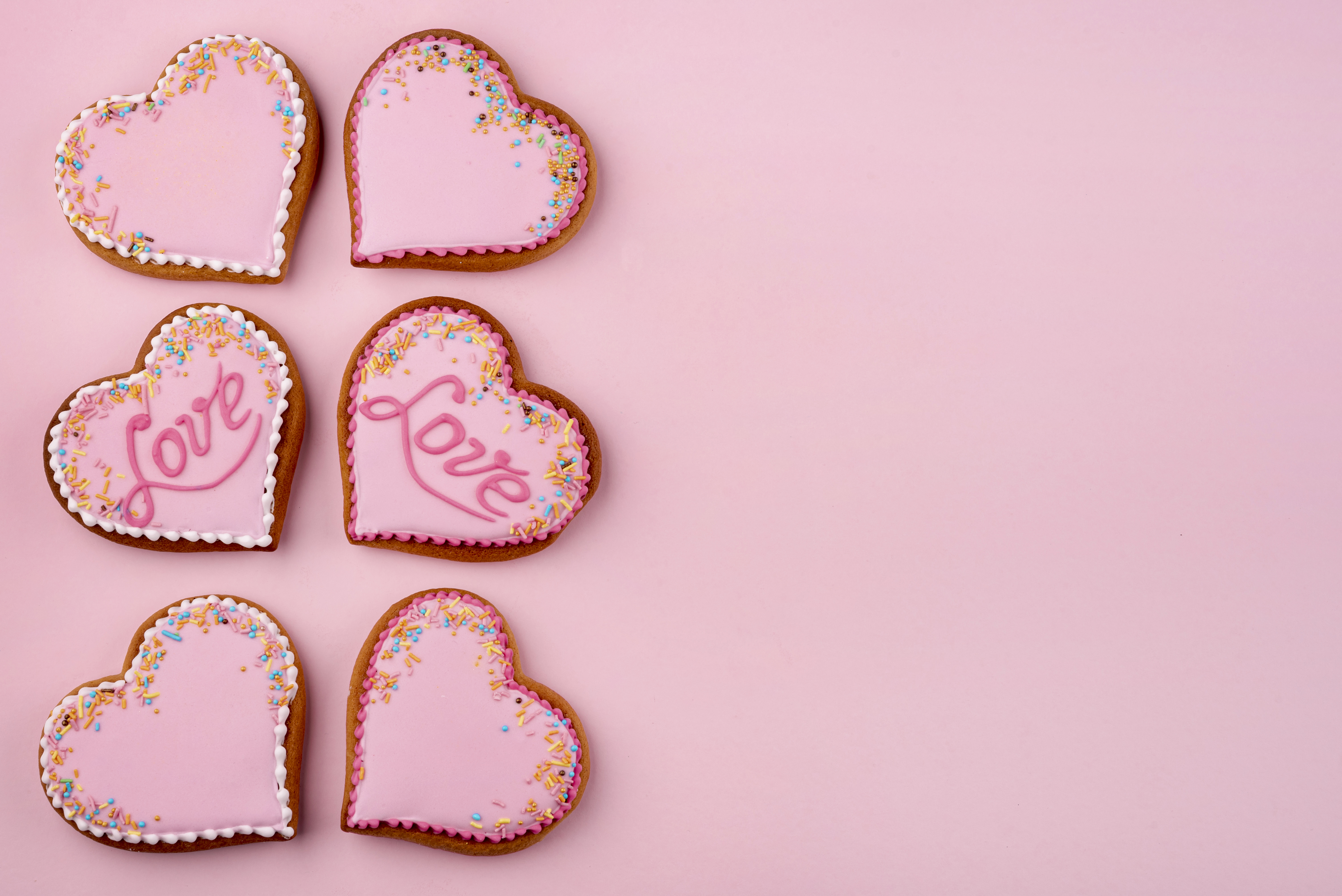 Печенье в форме сердца на розовом фоне - 6016x4016