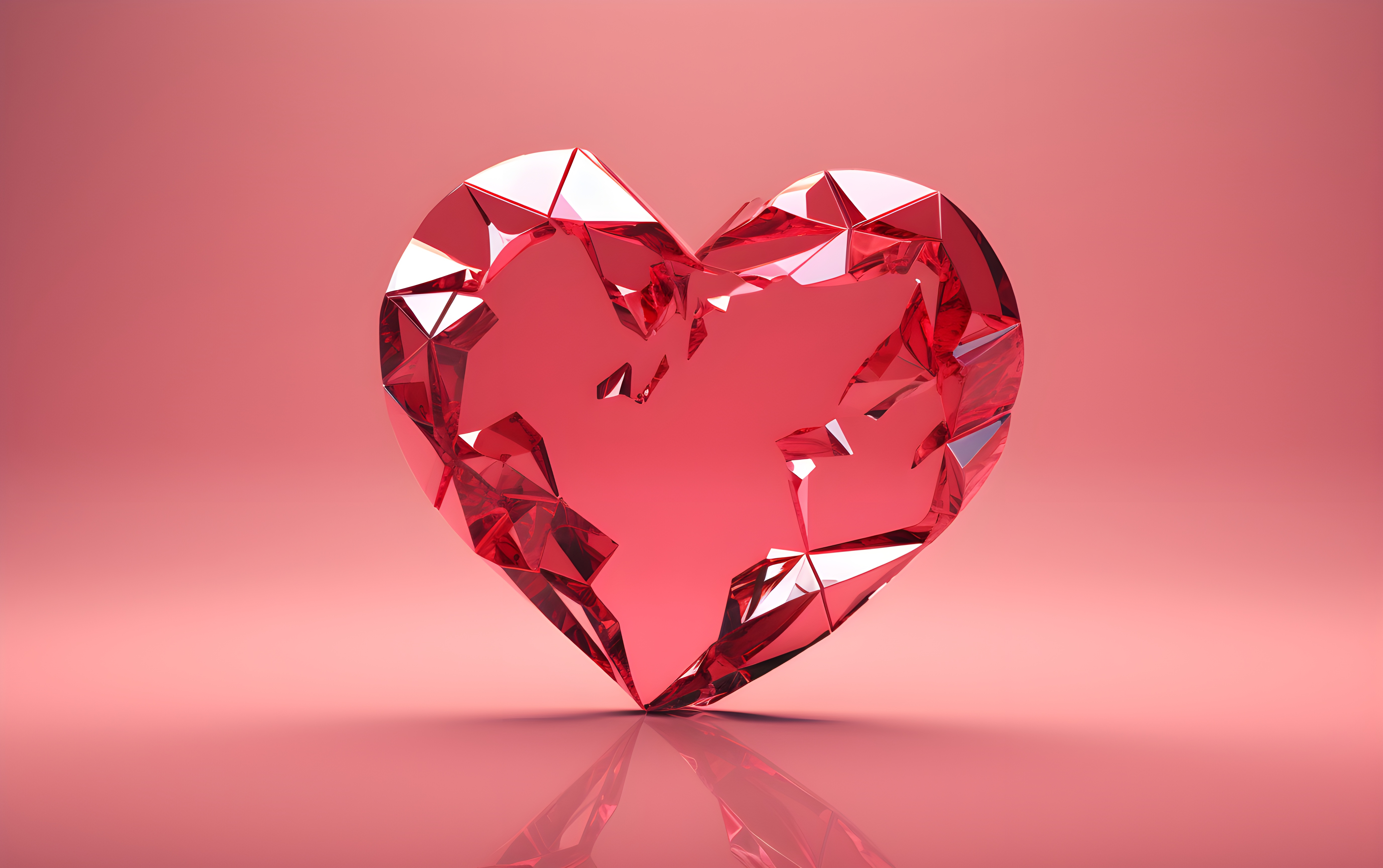 Стеклянное разбитое сердце на розовом фоне - 5504x3456