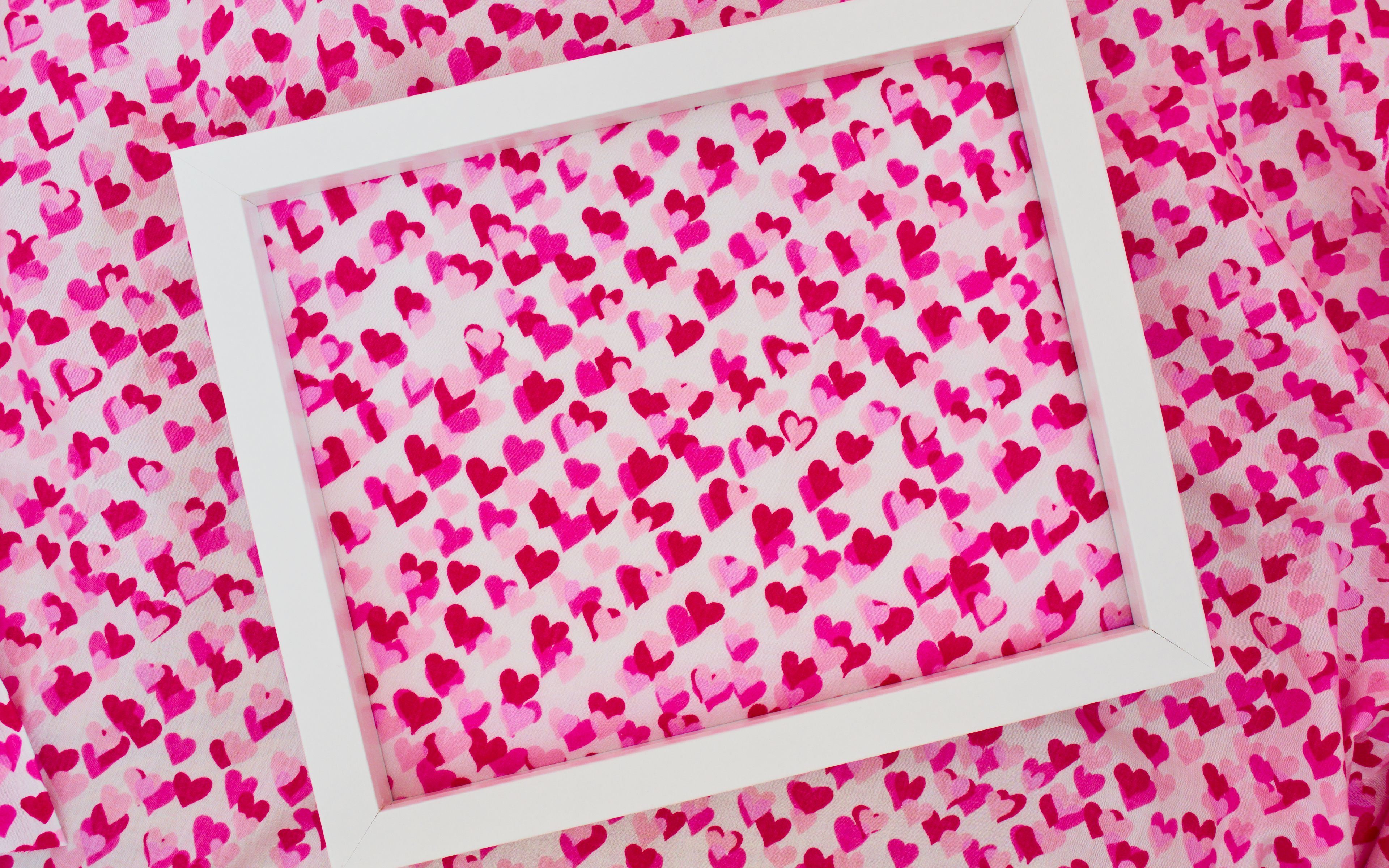 Белая рамка на ткани с маленькими сердечками - 3840x2400