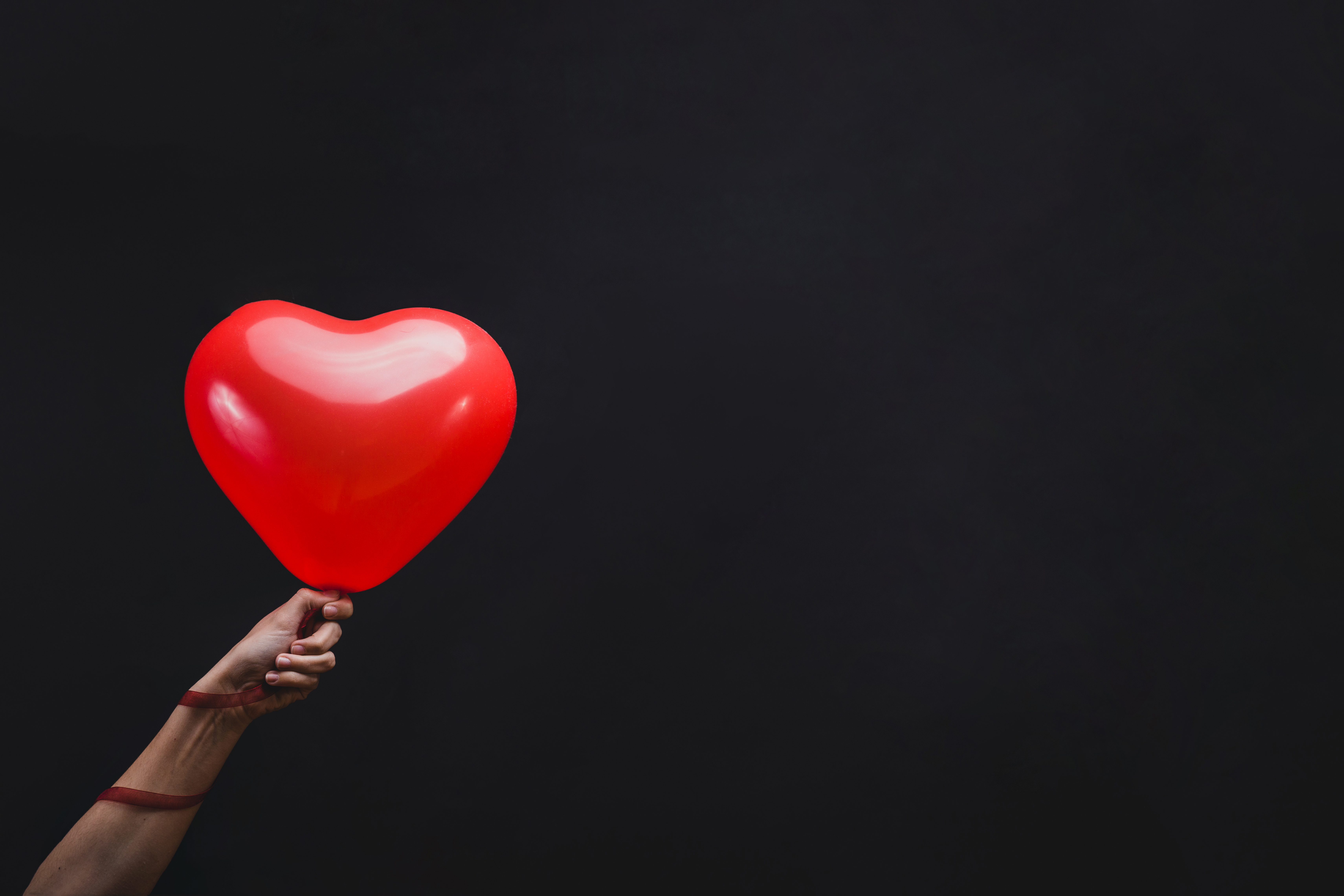Красный шарик в форме сердца на черном фоне - 6841x4561