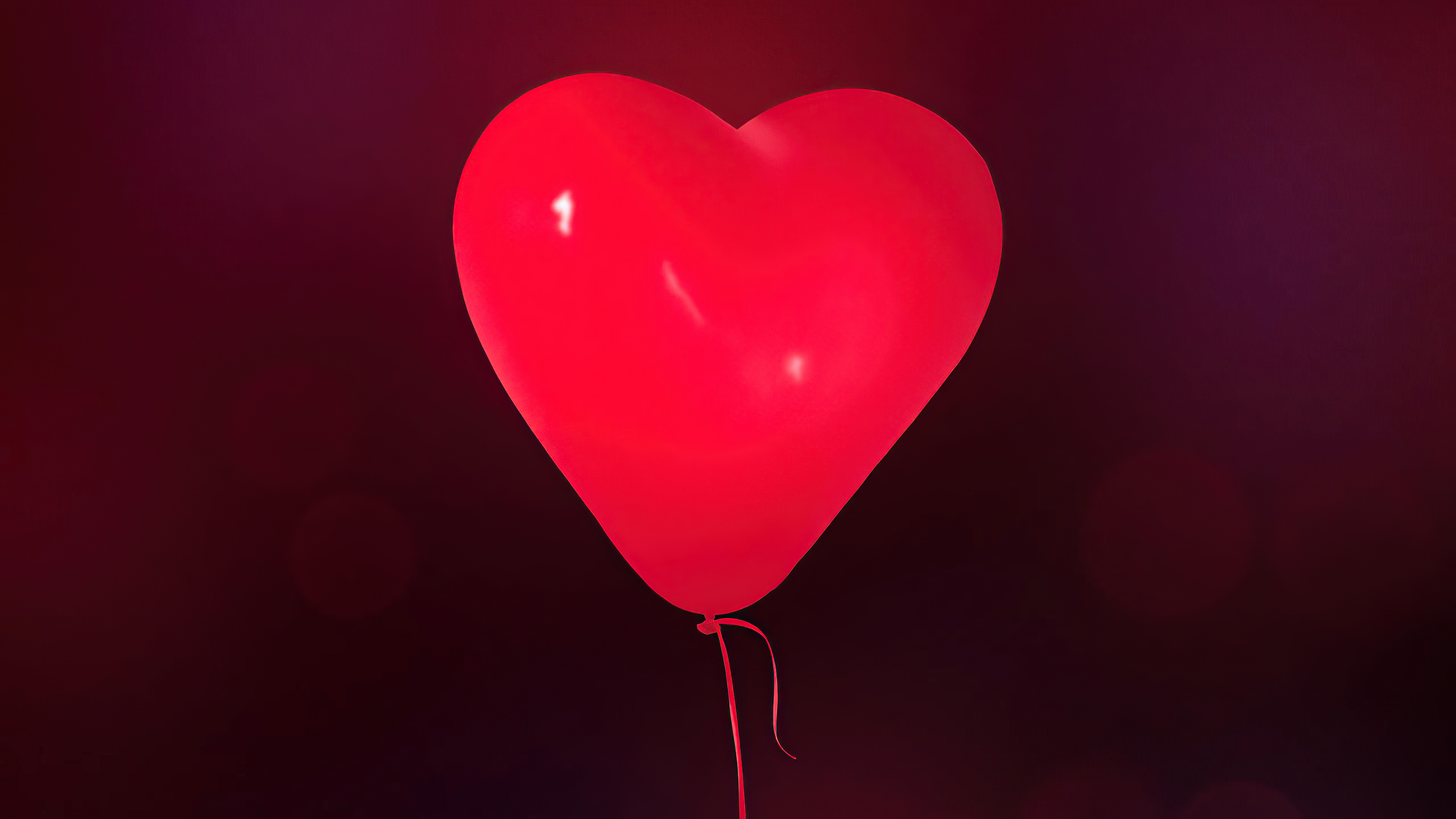 Красный шарик в форме сердца на фоне стены - 5120x2880