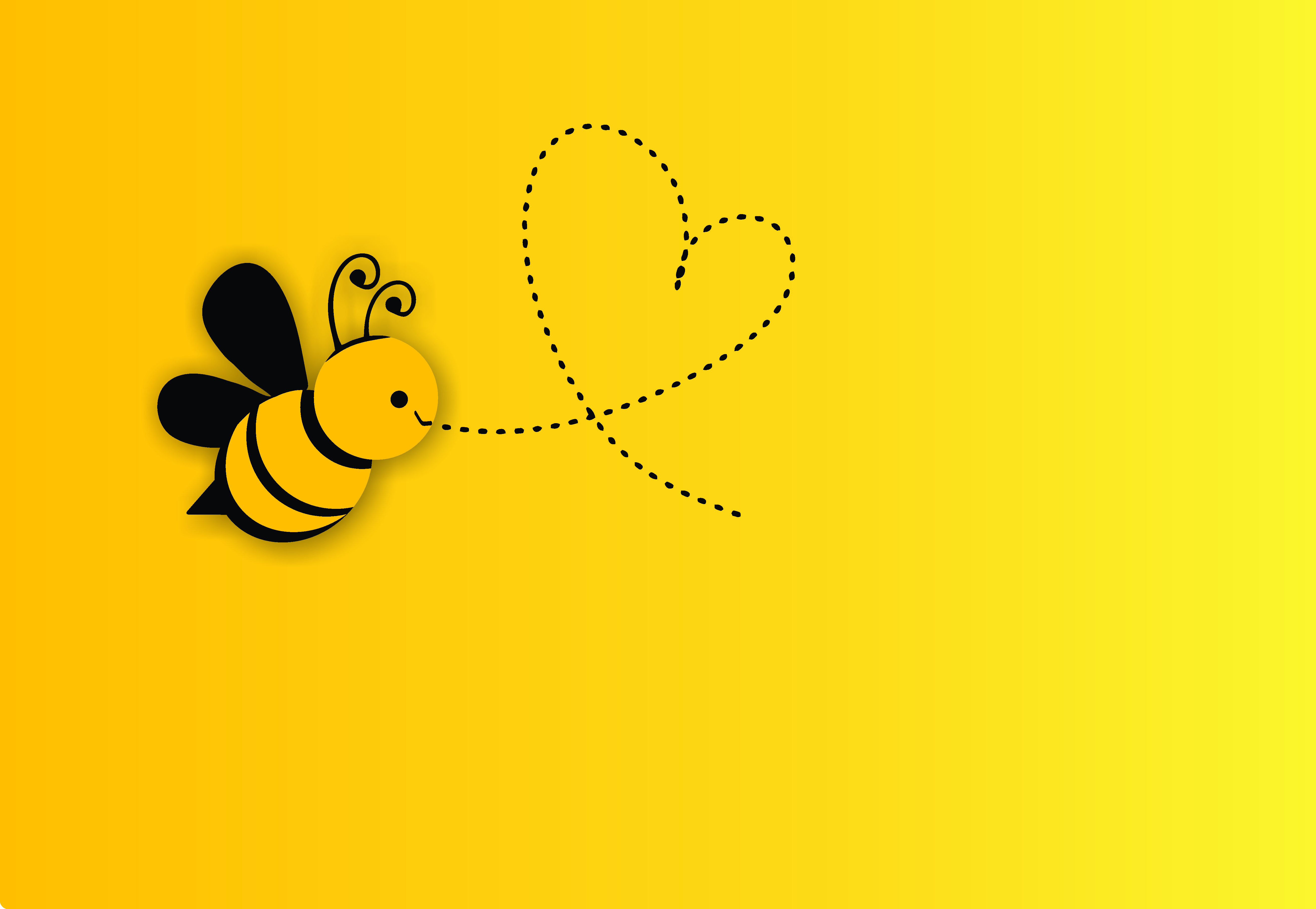 Обои: Нарисованная пчела с сердечком на желтом фоне