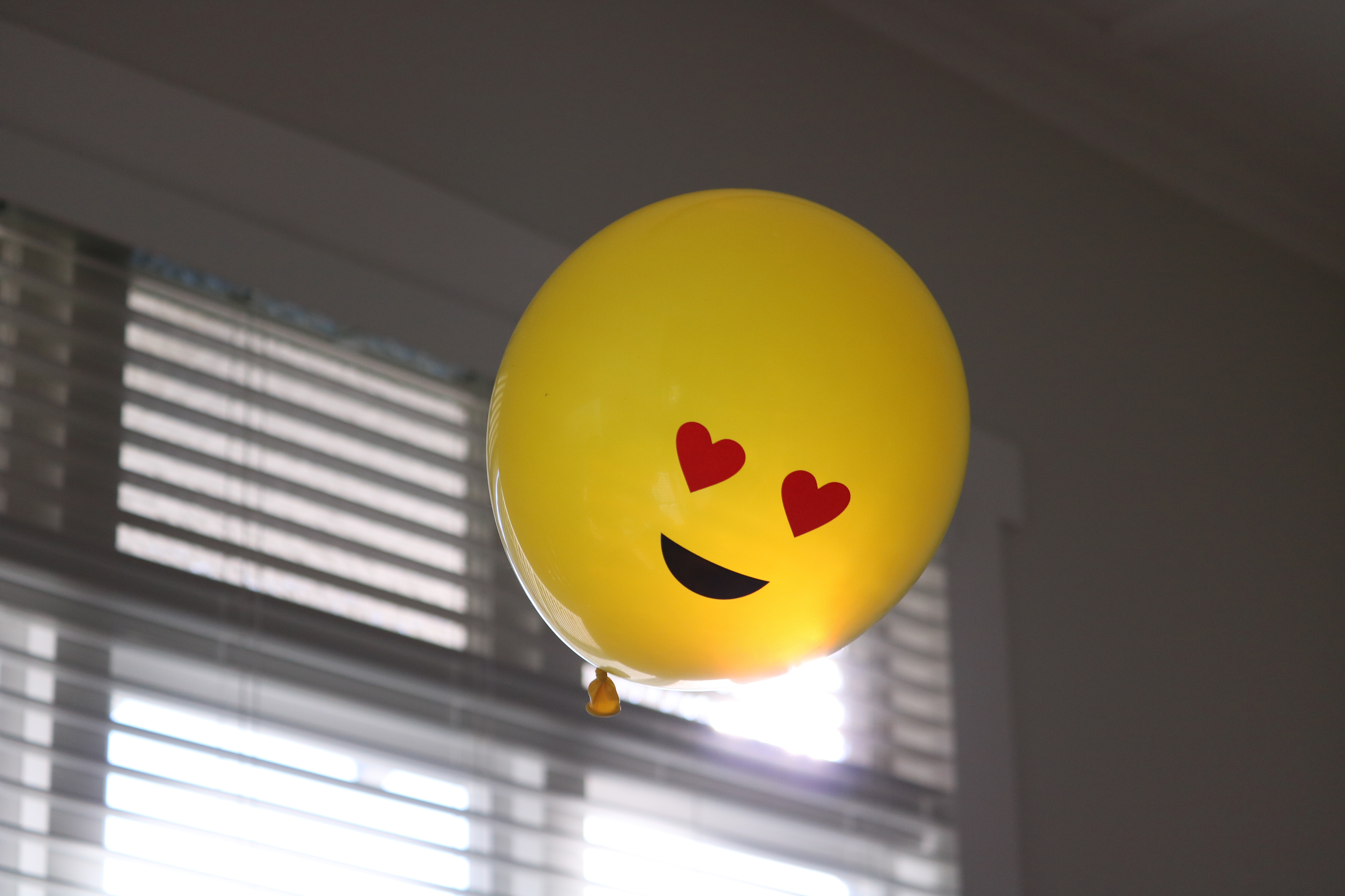 Желтый воздушный шарик с глазами в форме сердца - 6000x4000