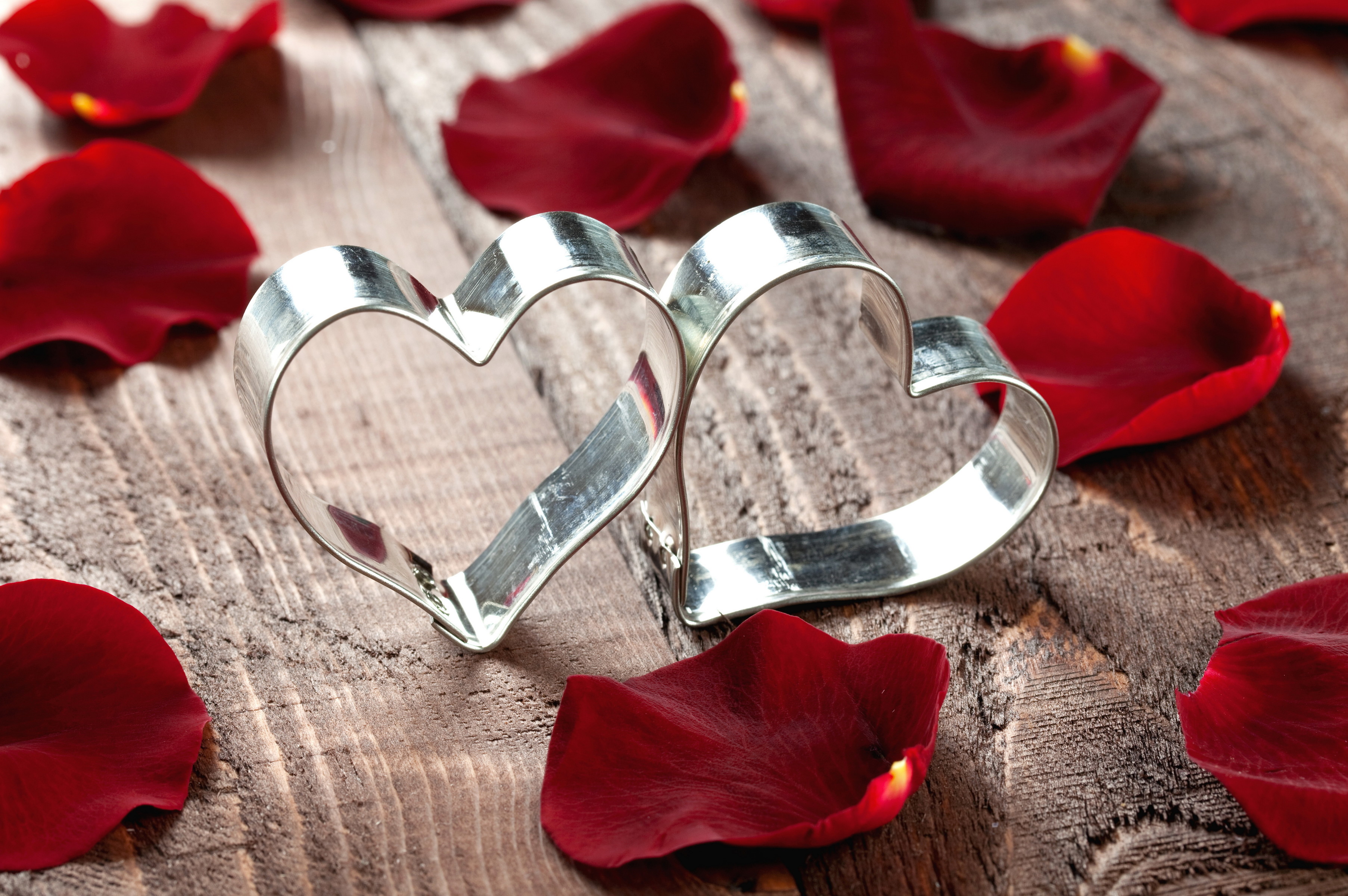 Две формочки в форме сердца с красными лепестками розы - 3611x2400
