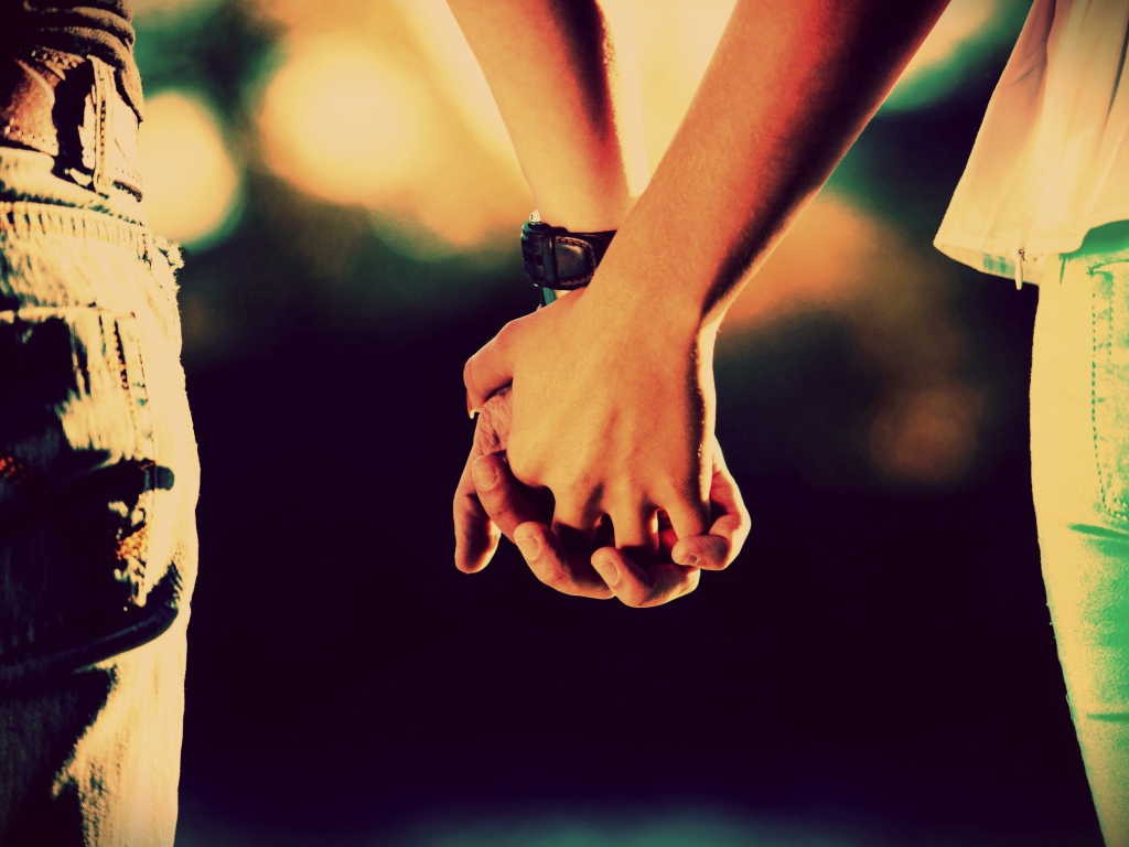 Влюбленные взялись за руки Обои для рабочего стола 1024x768
