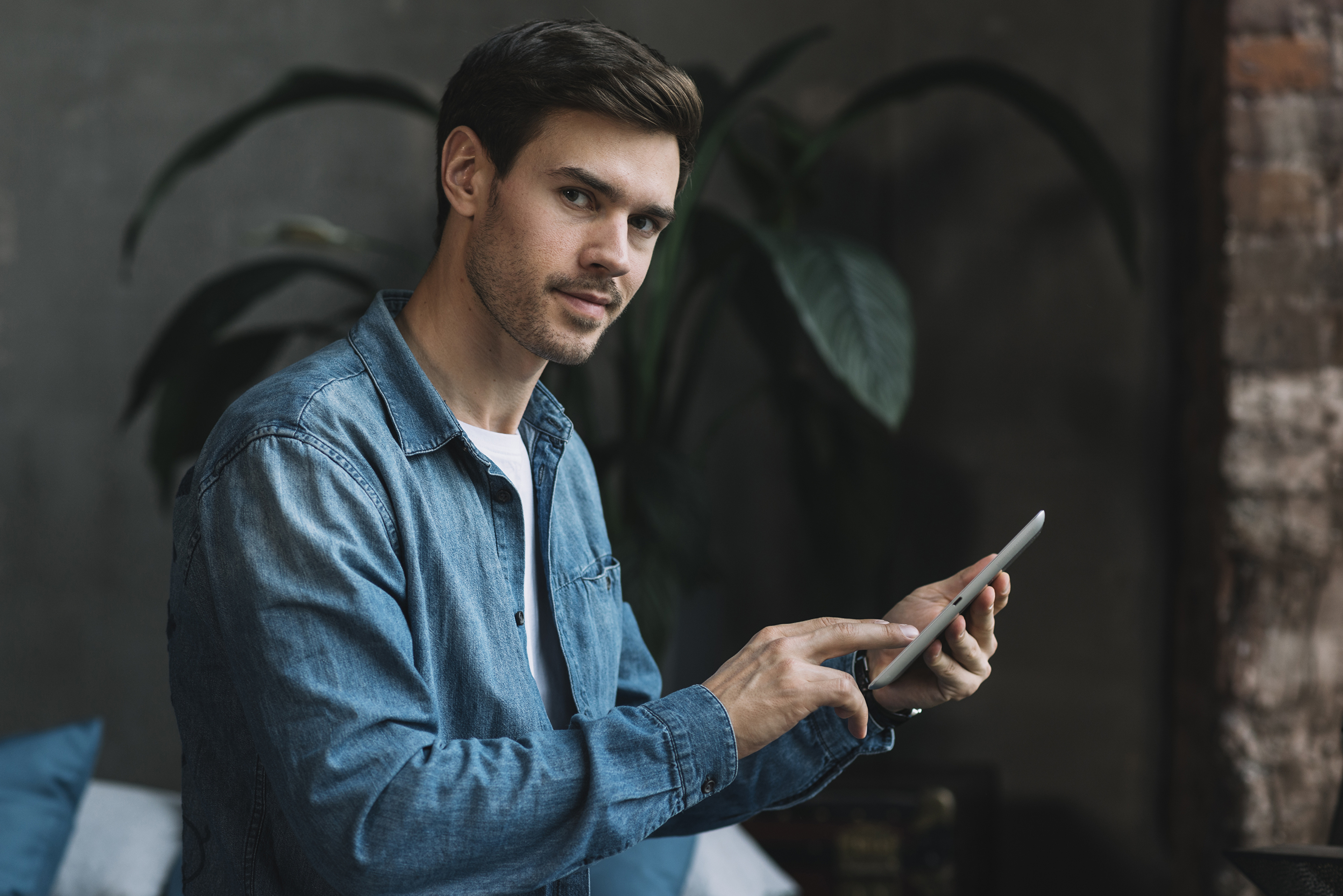 Красивый мужчина со смартфоном в руке - 3840x2562