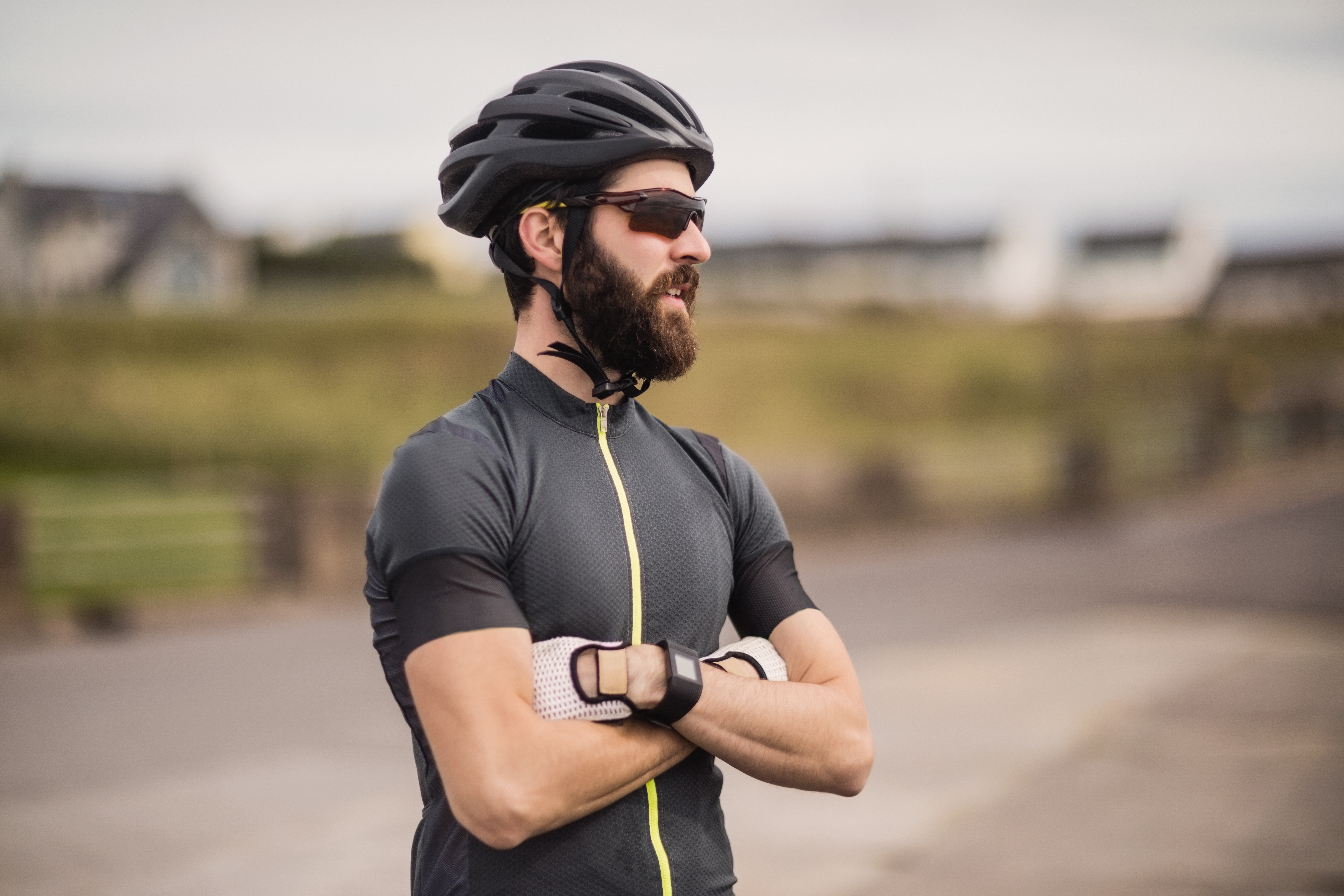 Мужчина велосипедист в черном шлеме - 8688x5792