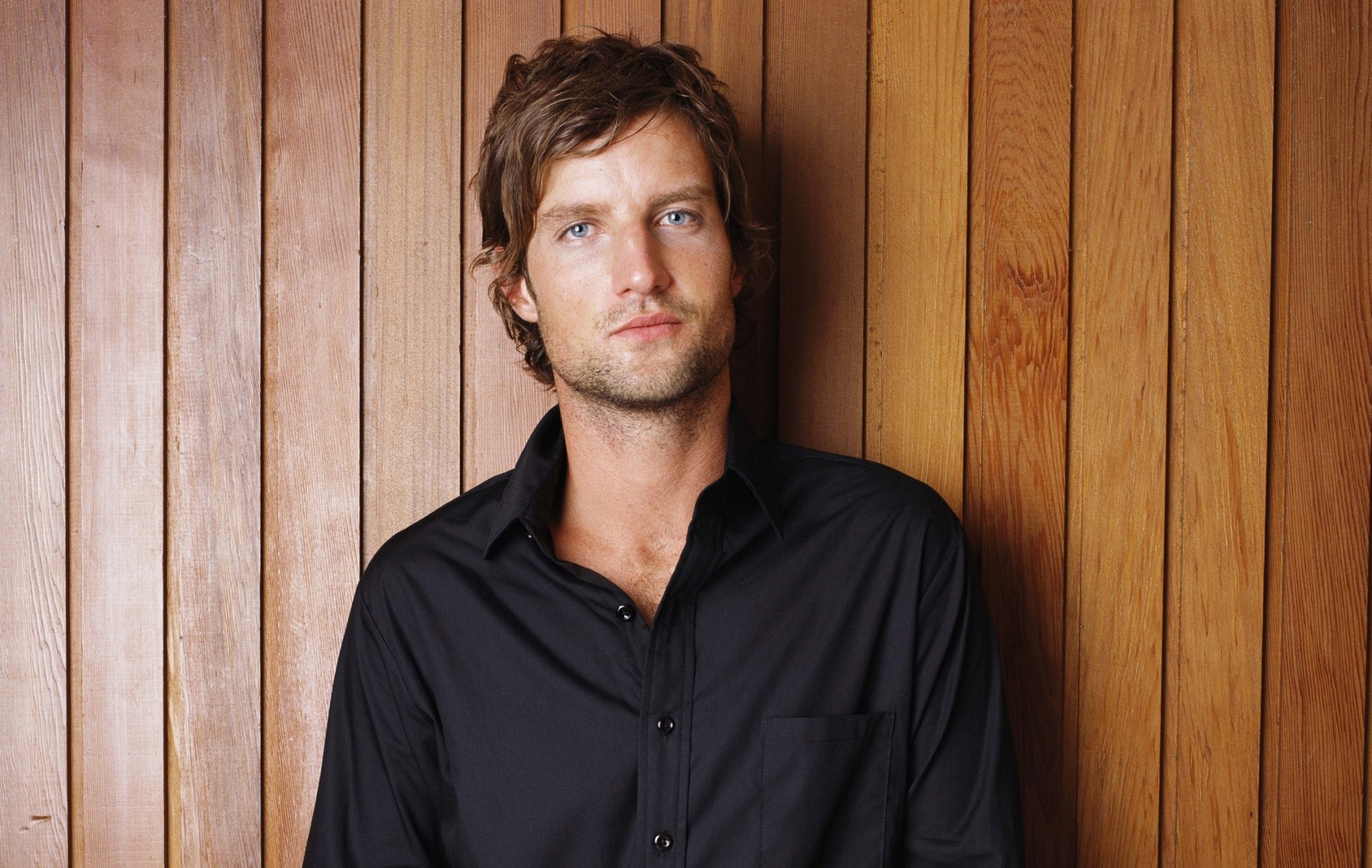 Обои: Красивый мужчина в черной рубашке на деревянном фоне