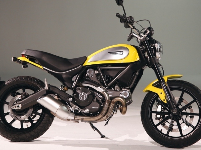 Обои: Черно желтый мотоцикл Дукати Скремблер