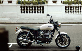 Мотоцикл Triumph Bonneville на дороге в лесу