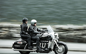 Два мотоцикла Triumph Rocket 3, 2021 года на берегу