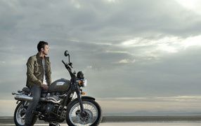 Мотоцикл Triumph Scrambler 1200 XC на сером фоне
