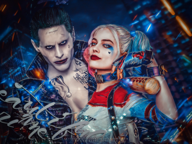 Обои: Джокер и Харли Квинн герои фильма Отряд самоубийц