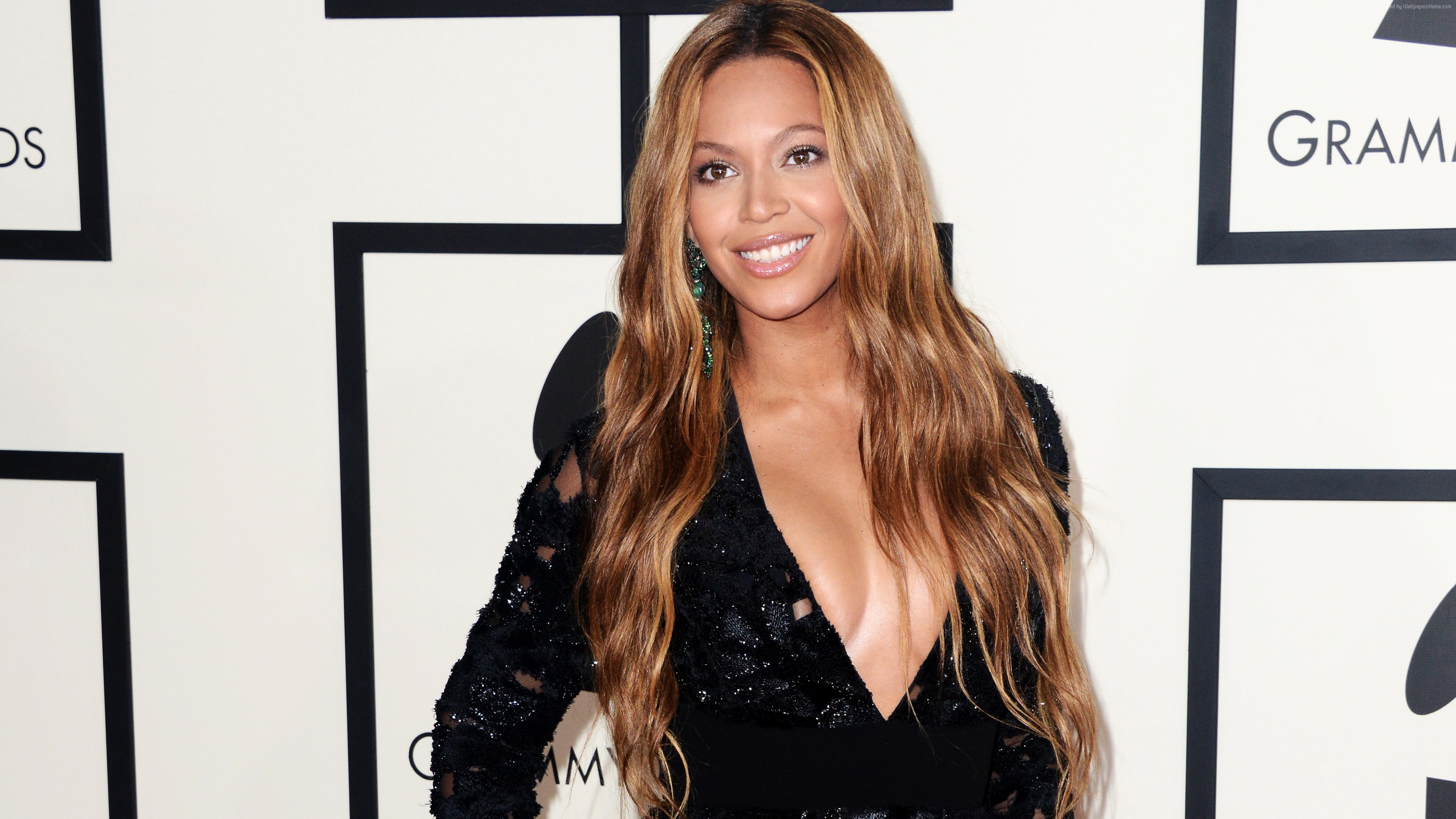 Красивая улыбающаяся певица Бейонсе в черном платье - 3840x2160