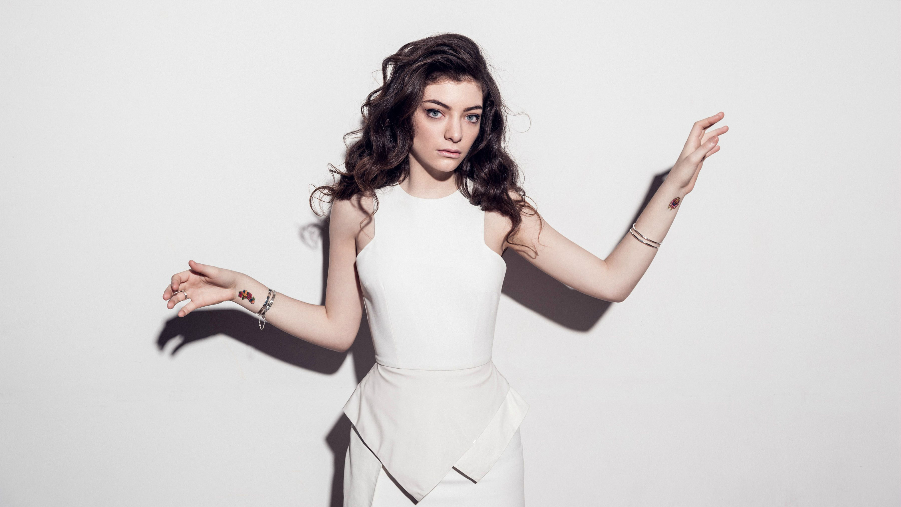 Обои: Новозеландская певица Лорд в белом платье