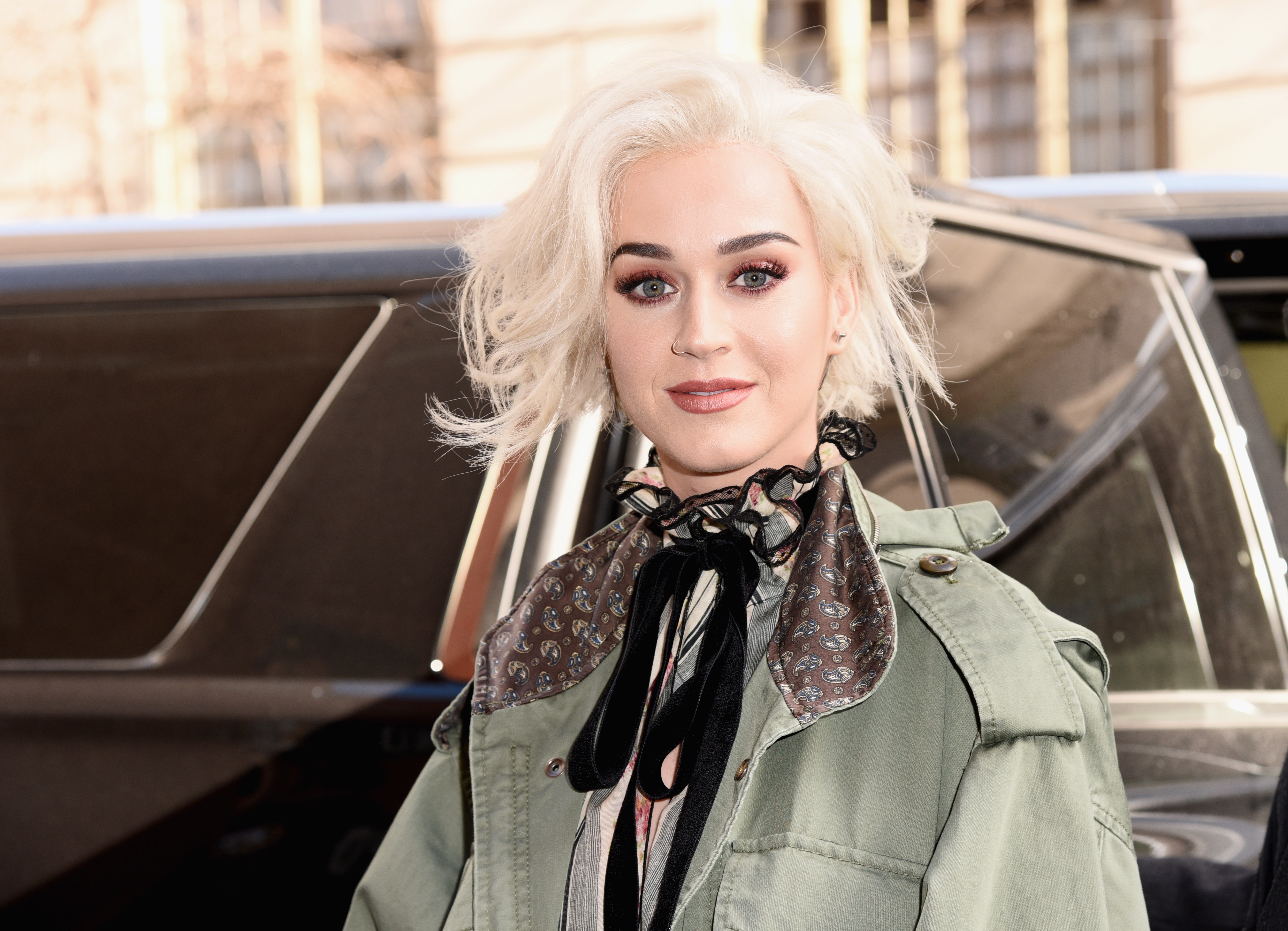 Блондинка Кэти Перри у машины