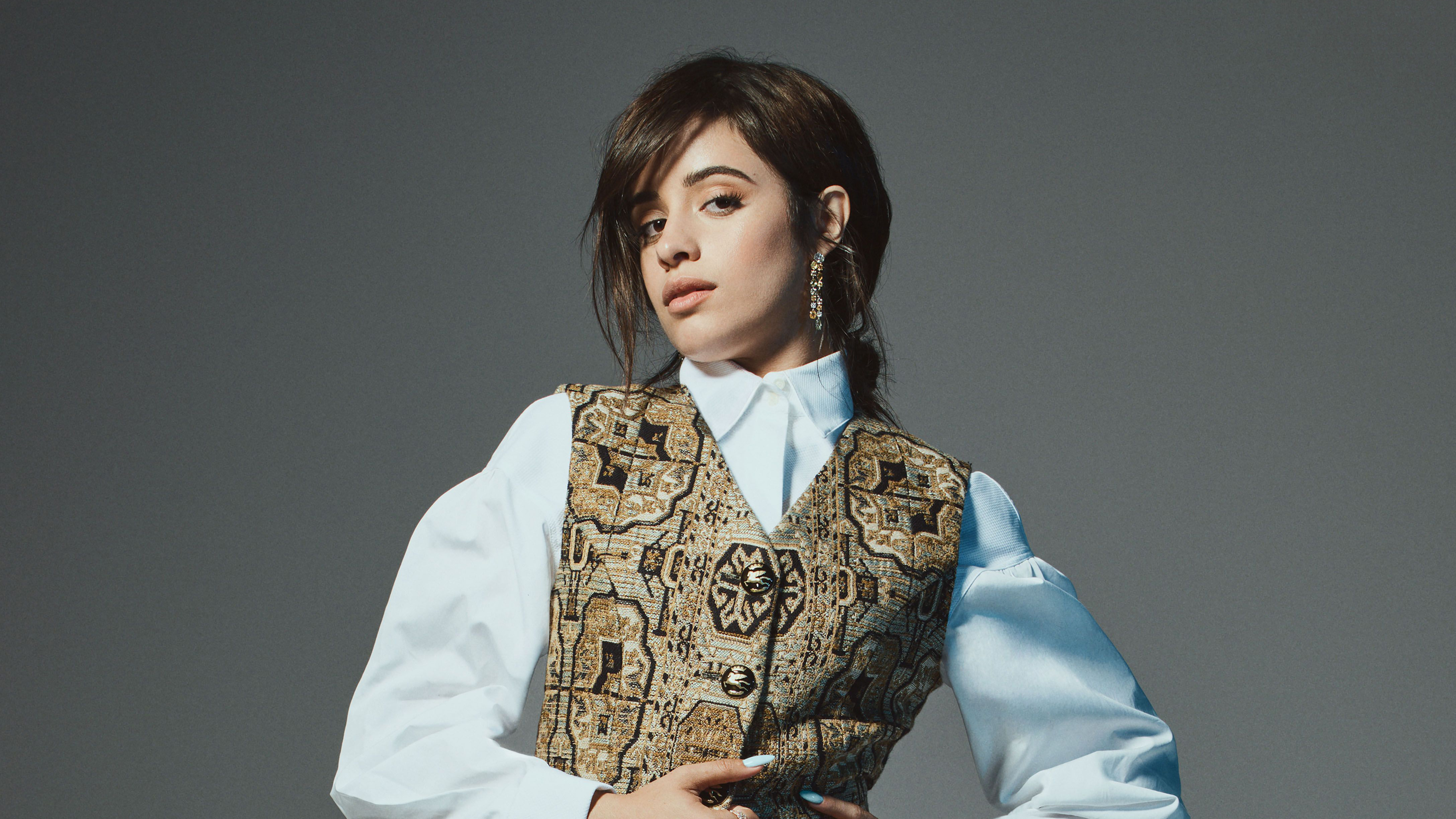Обои: Красивая певица Камила Кабельо на сером фоне