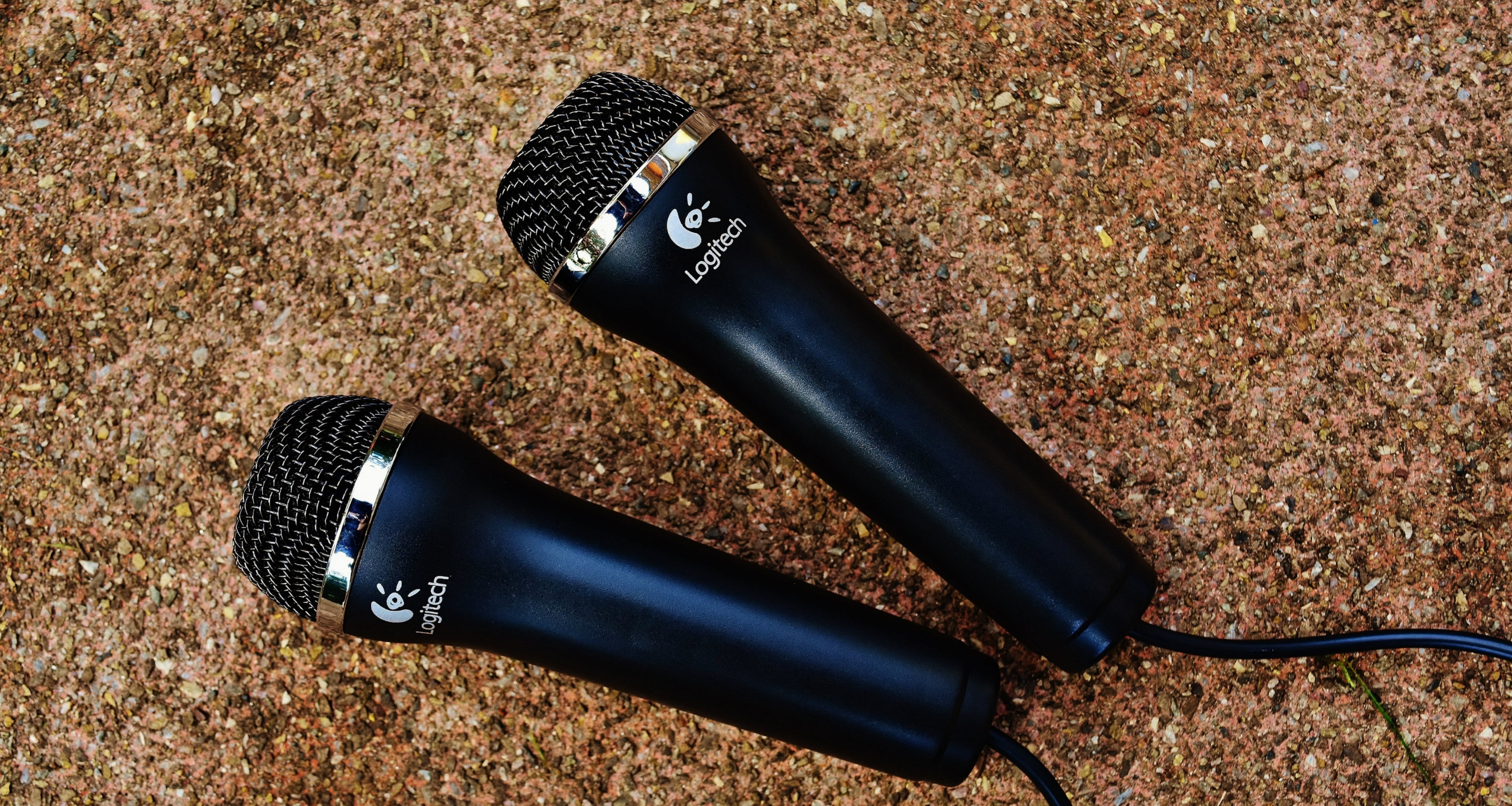 Два микрофона logitech на асфальте - 3798x2025