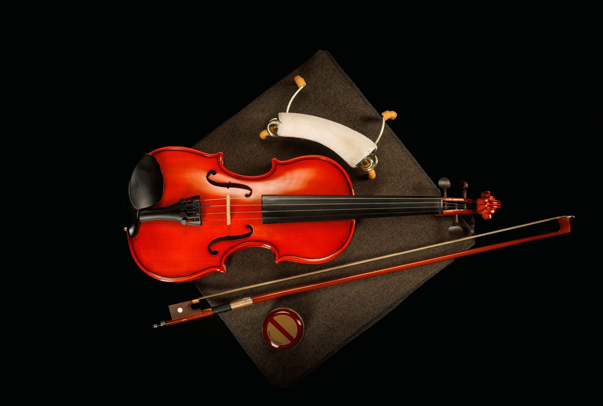 Красная скрипка со смычком на черном фоне - 2531x1707