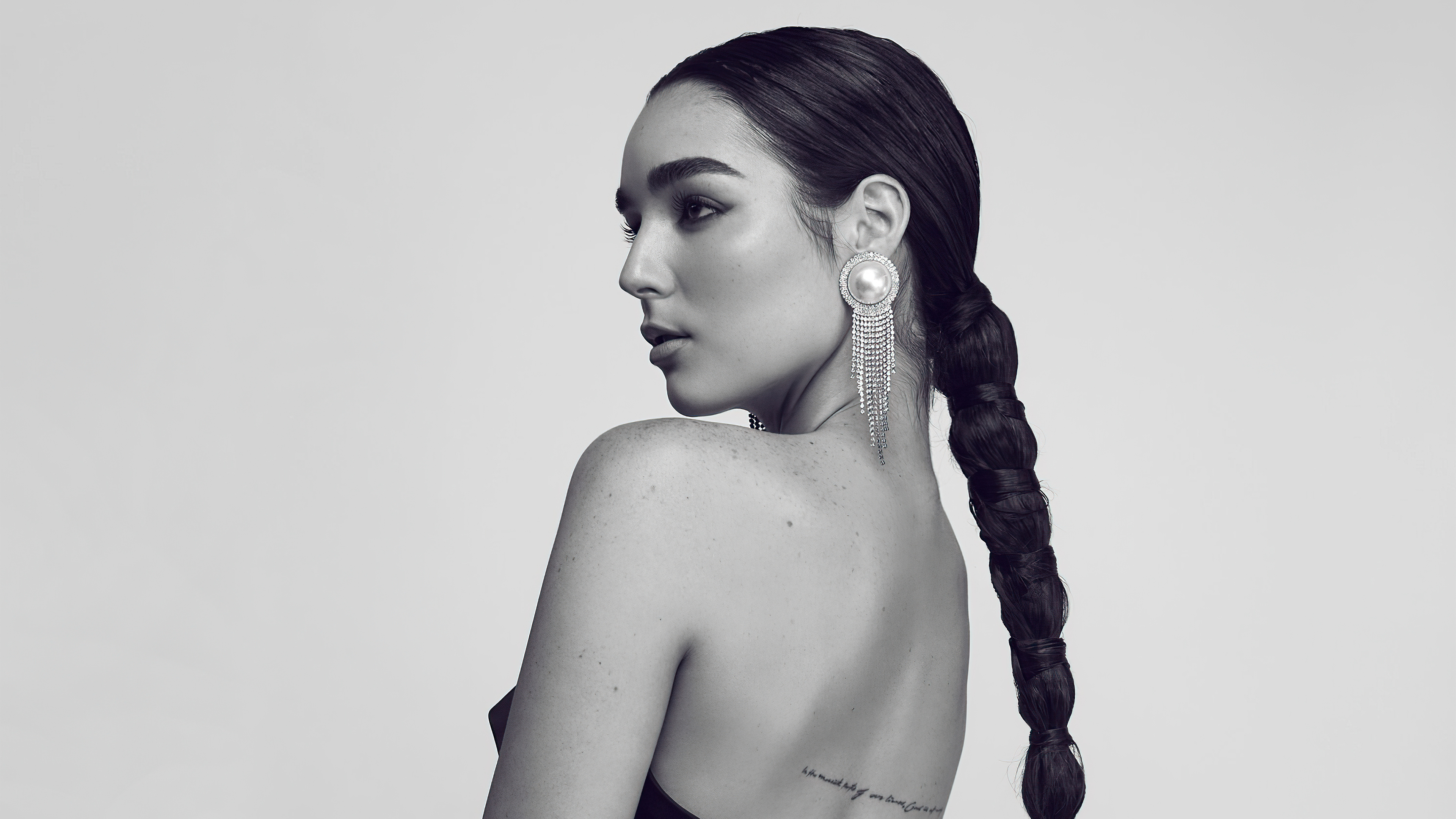 Красивая певица Индиана Массара на сером фоне - 3840x2160