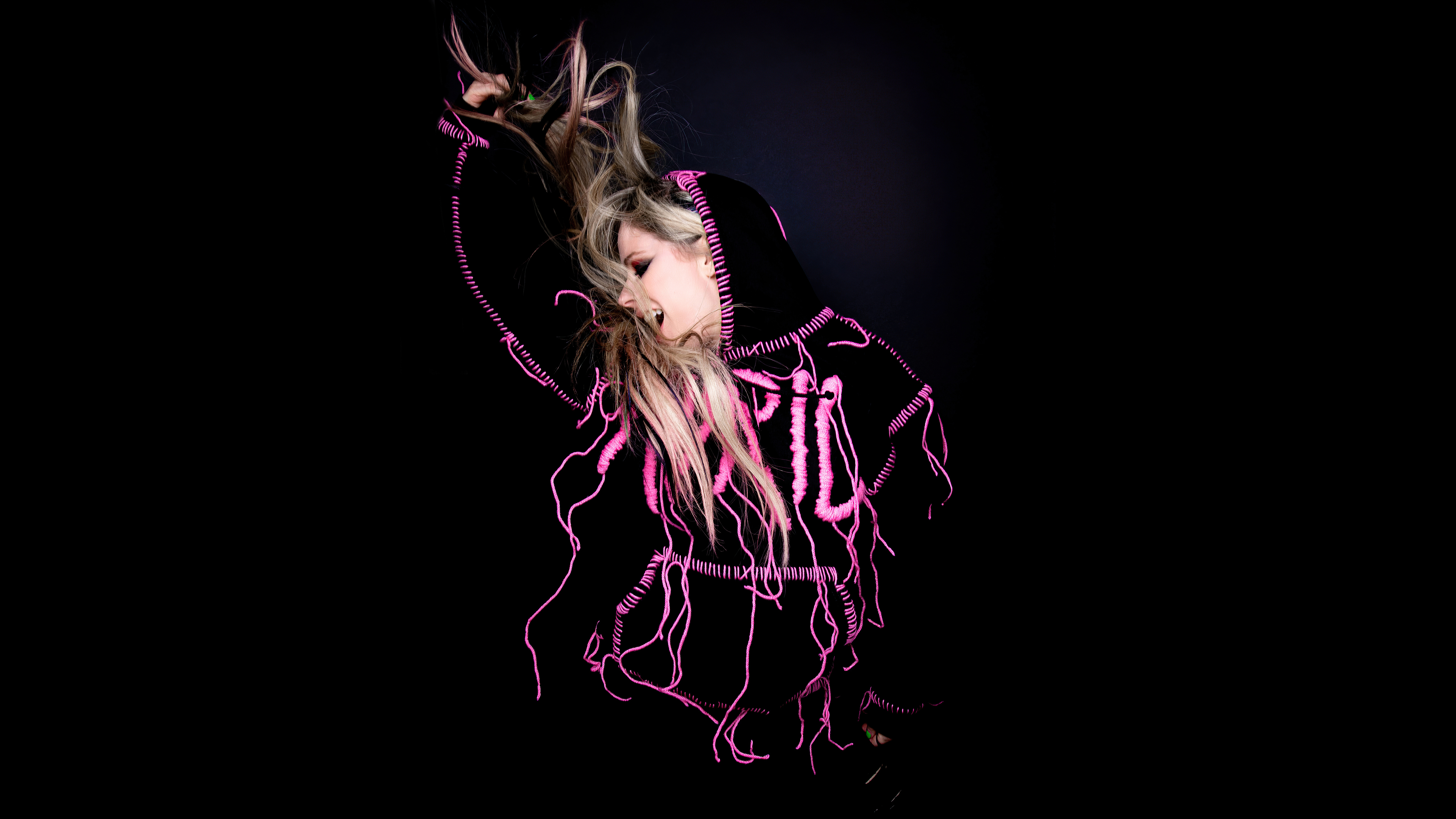Певица Аврил Лавин на черном фоне - 5120x2880