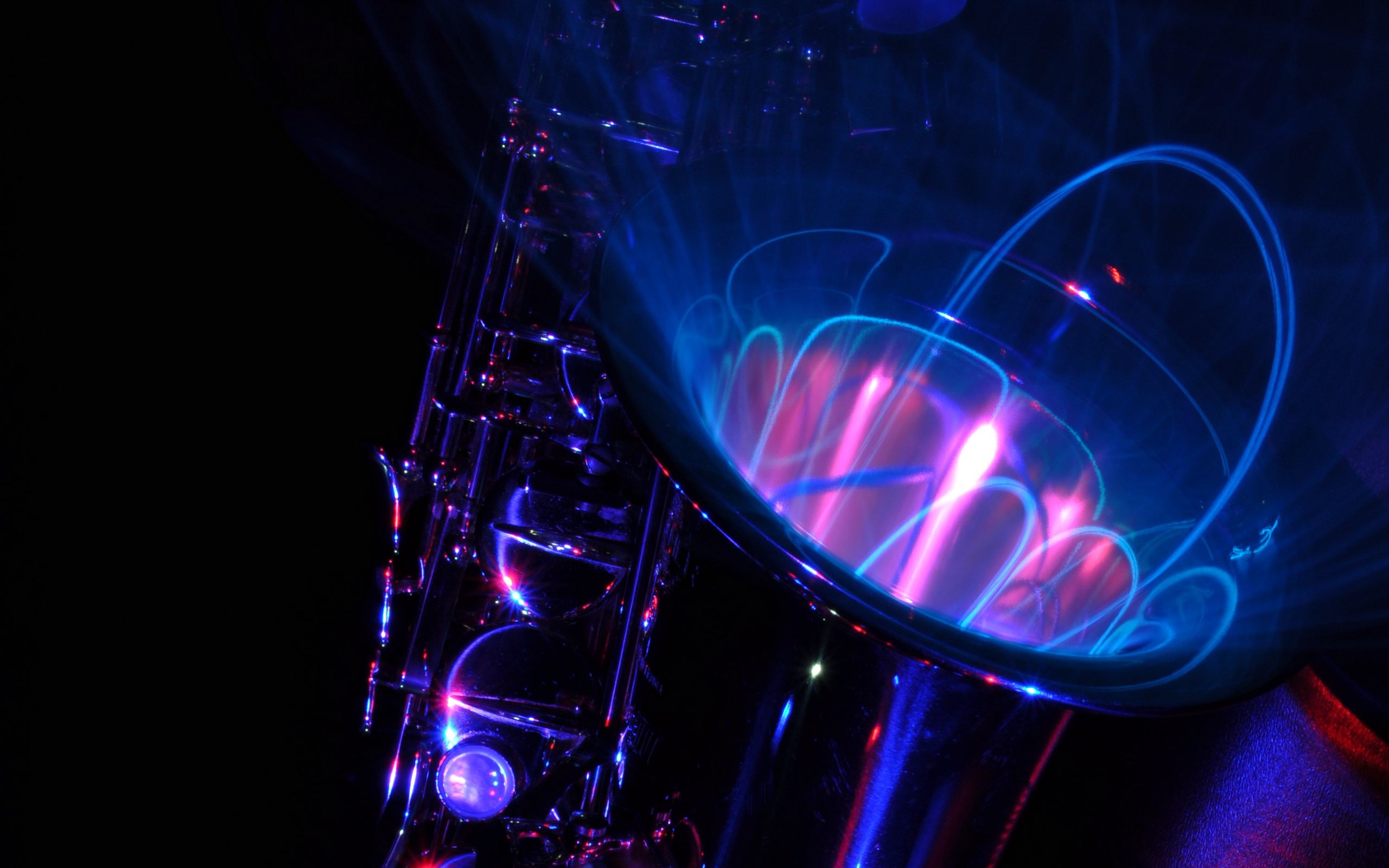 Неоновые волны вырываются из саксофона - 2560x1600