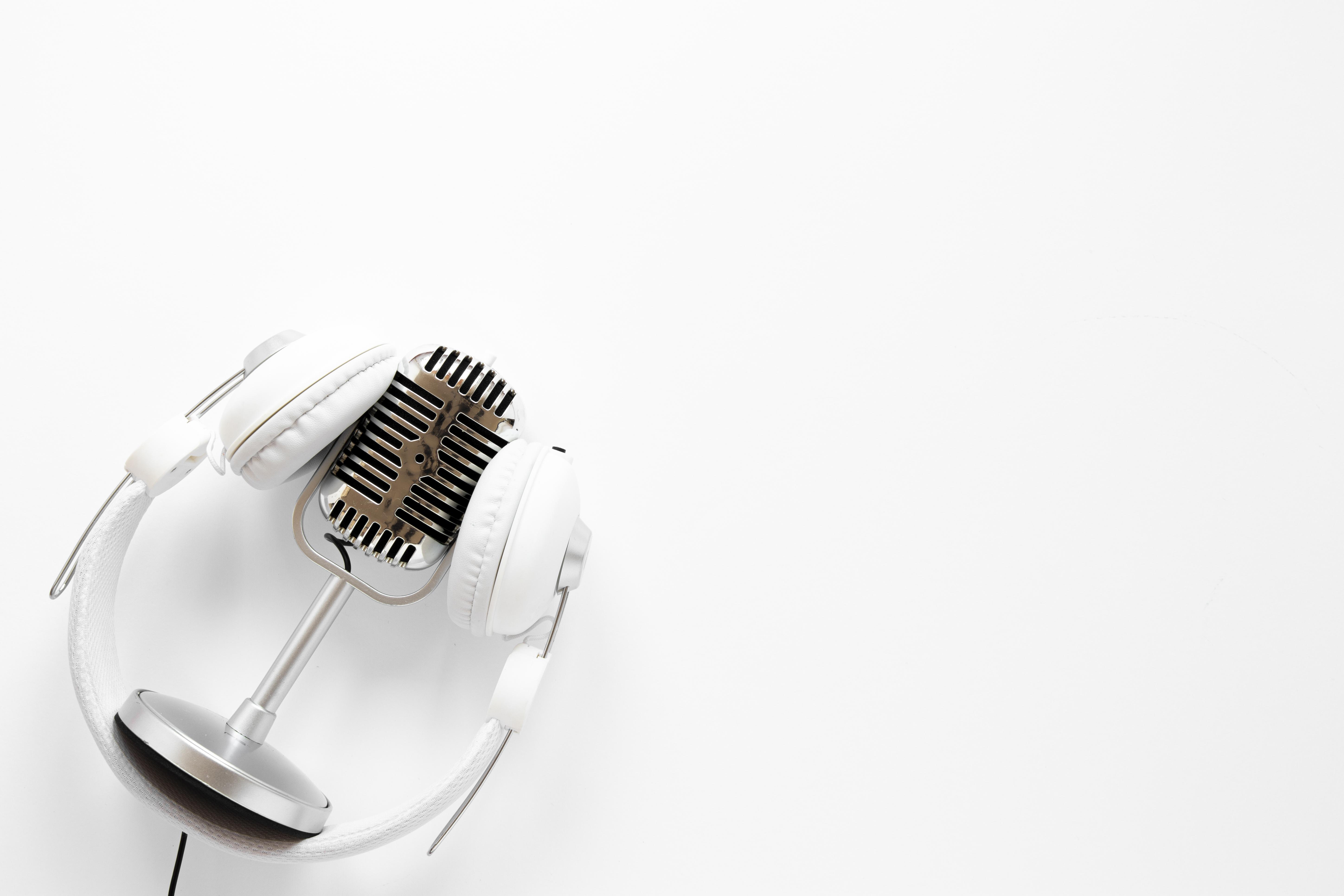 Ретро микрофон с наушниками на белом фоне - 5795x3863