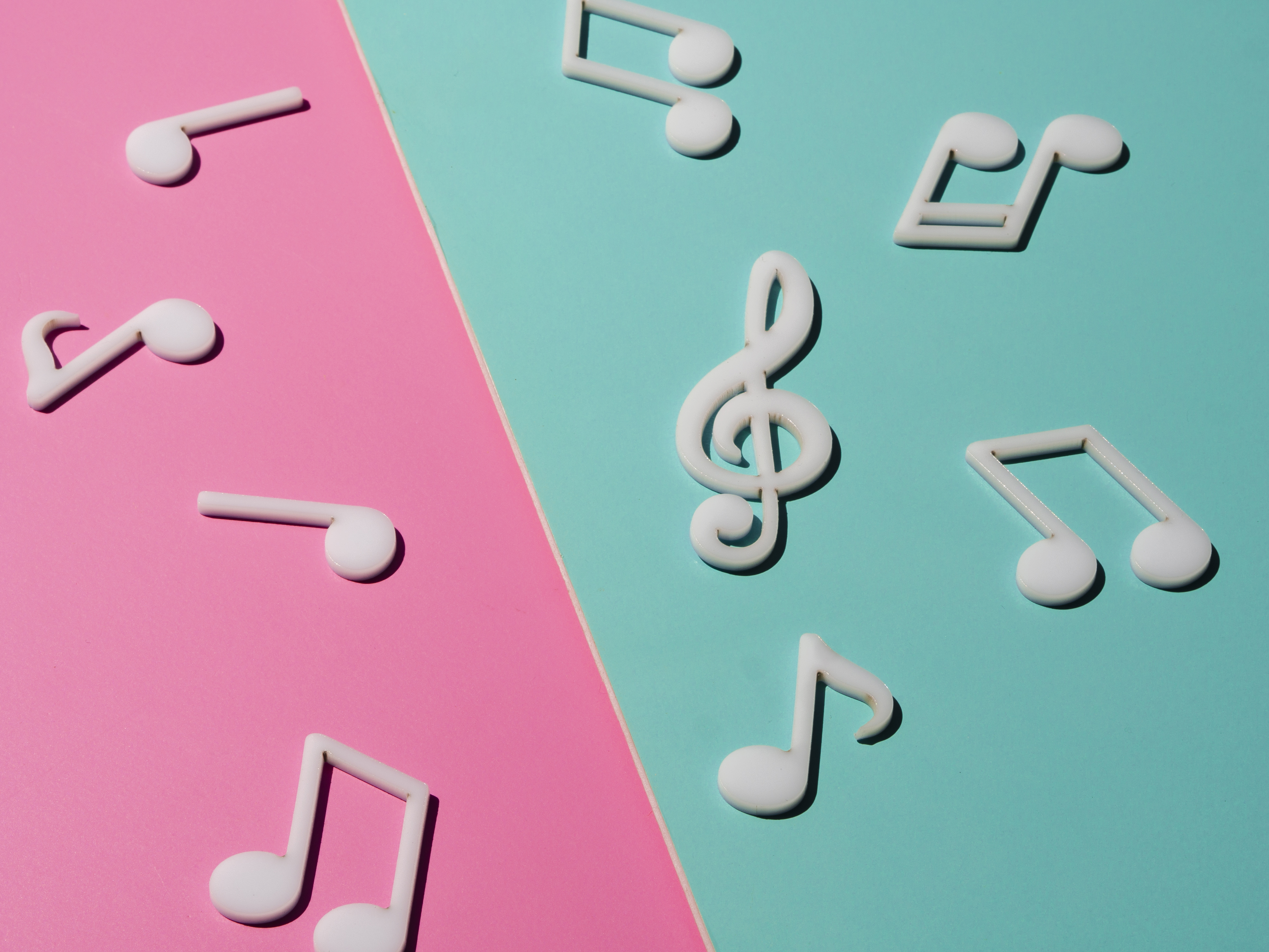 Розовый и голубой фон с нотами - 4608x3456