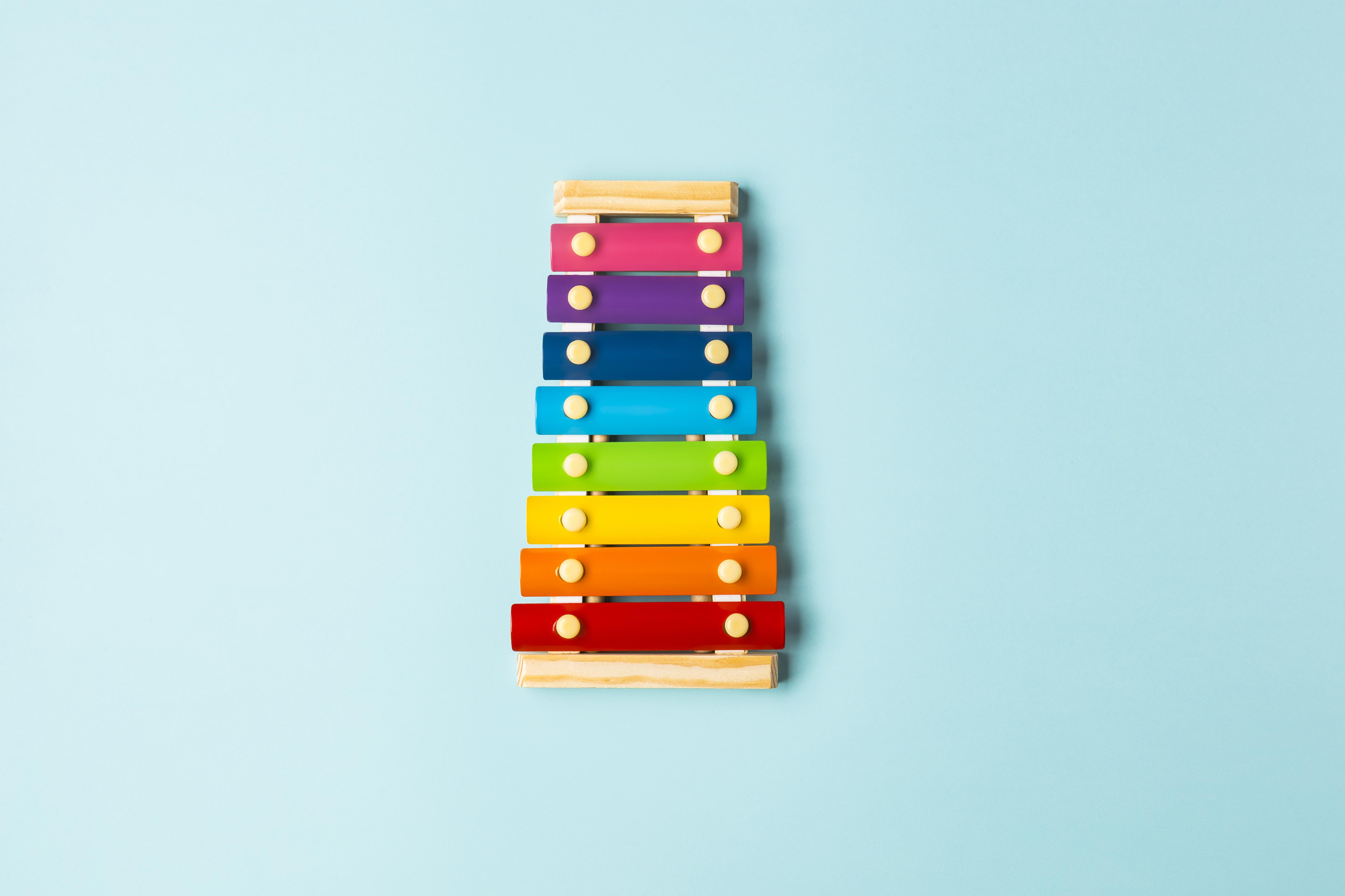 Обои: Музыкальный инструмент металлофон на голубом фоне