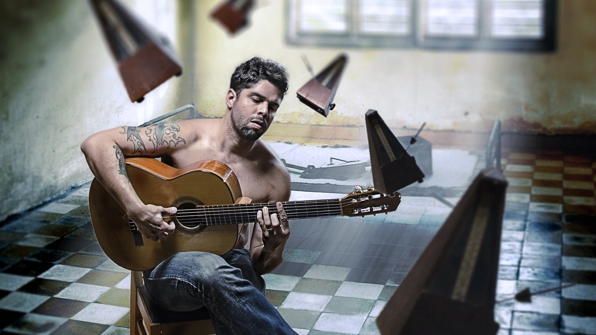 Обои: Мужчина играет на гитаре