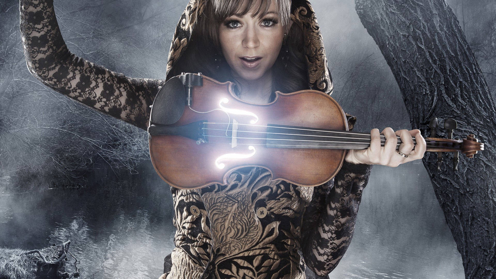 Обои: Певица со скрипкой