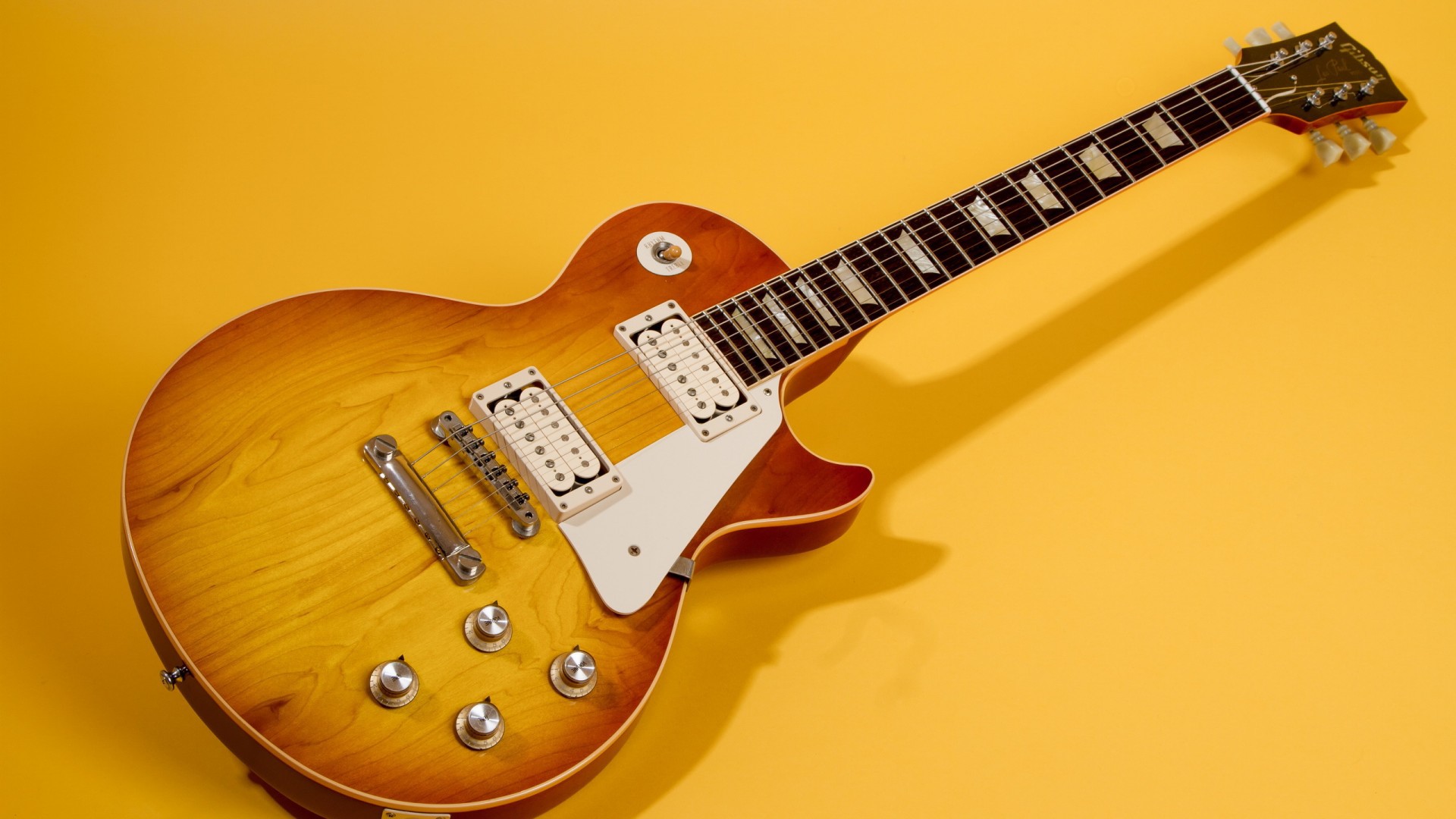 Гитара с тенью на жёлтом фоне - 1920x1080