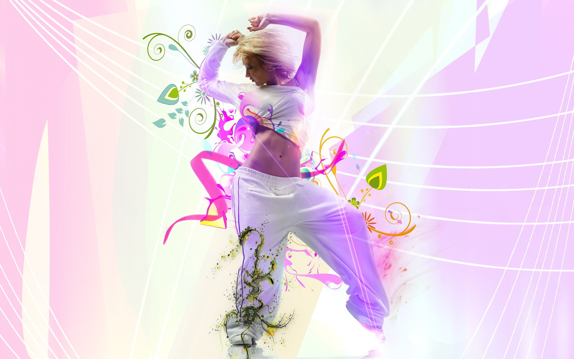 Девушка в белом танцует - 1920x1200